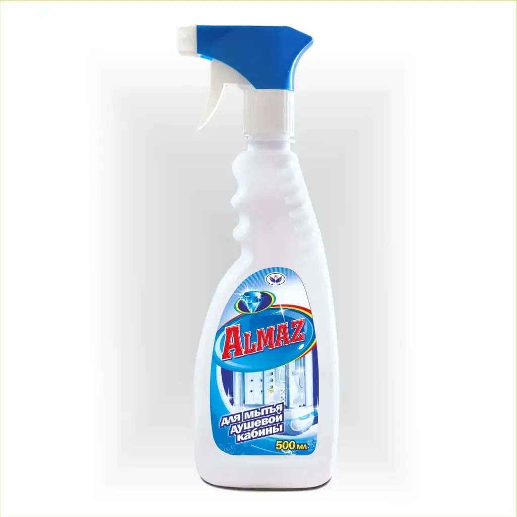 Флакон с моющим средством имеет удобную форму и эргономичный распылитель, что обеспечивает комфортное использование. Основной цвет упаковки — белый с синими акцентами, что делает его стильным дополнением к интерьеру вашей ванной. Не упустите возможность сделать вашу душевую кабину чистой и ухоженной с помощью средства ALMAZ!