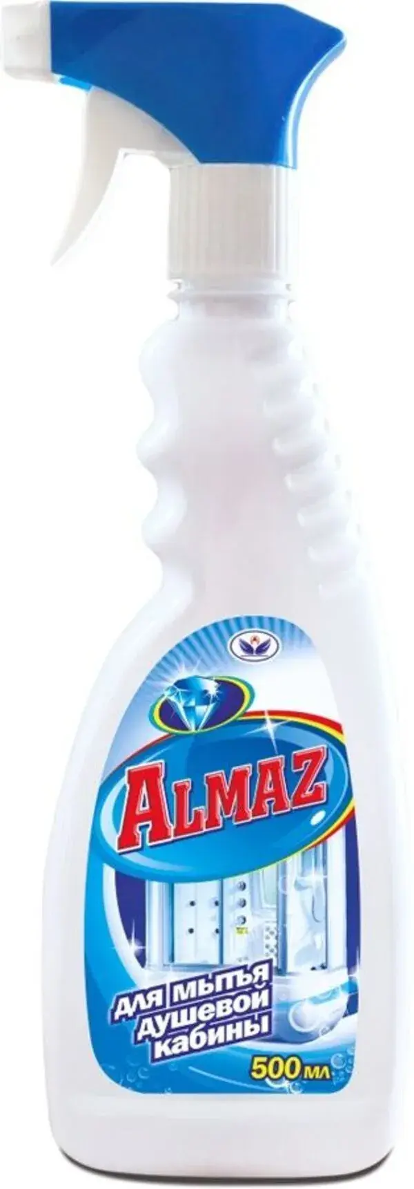 Применение средства ALMAZ очень простое: достаточно распылить его на загрязненные поверхности душевой кабины, подождать несколько минут и затем смыть водой. Оно подходит для использования на стеклянных, пластиковых и керамических поверхностях, что делает его универсальным решением для любой ванной комнаты.