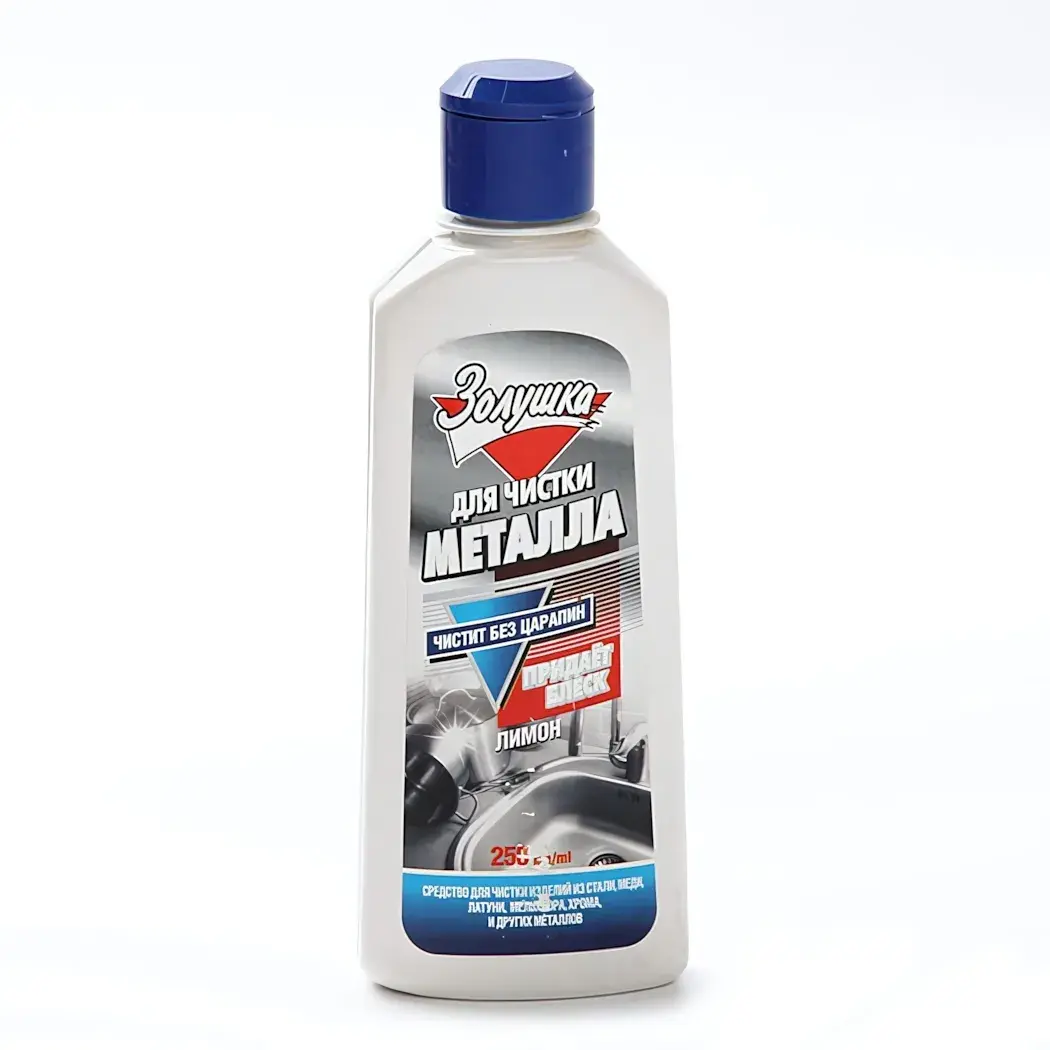 Объем бутылки составляет 250 мл, что достаточно для длительного использования. Упаковка выполнена в виде стандартного пластикового флакона с закручивающейся крышкой, что обеспечивает удобство хранения и использования. Не упустите возможность сделать ваши металлические поверхности блестящими и чистыми с помощью средства 'Золушка'!