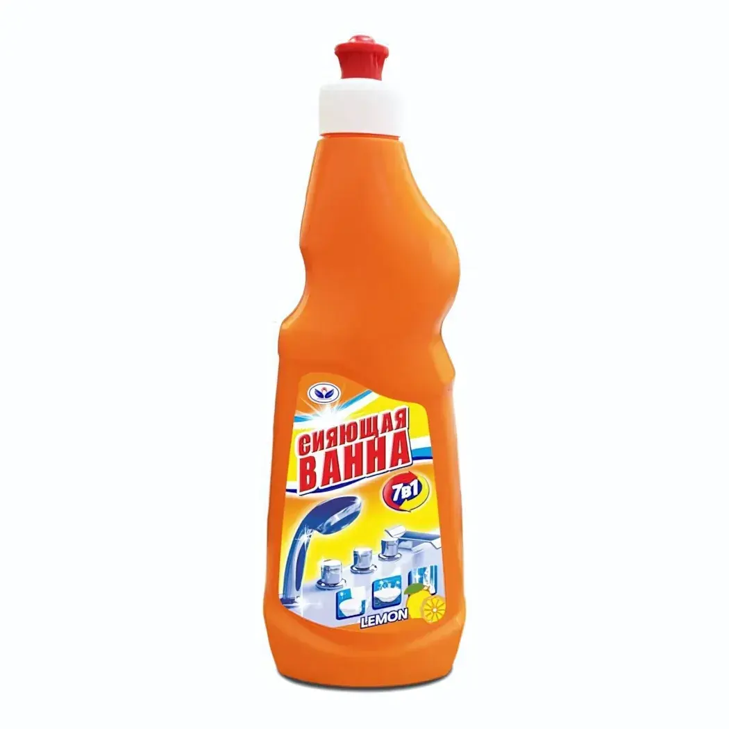 Объём упаковки составляет 500 мл, что обеспечивает длительное использование. Яркий оранжевый цвет бутылки и четкая этикетка делают продукт заметным и привлекательным на полке. «Сияющая ванна» — это не просто чистящее средство, это ваш надежный помощник в поддержании чистоты и уюта в ванной комнате.