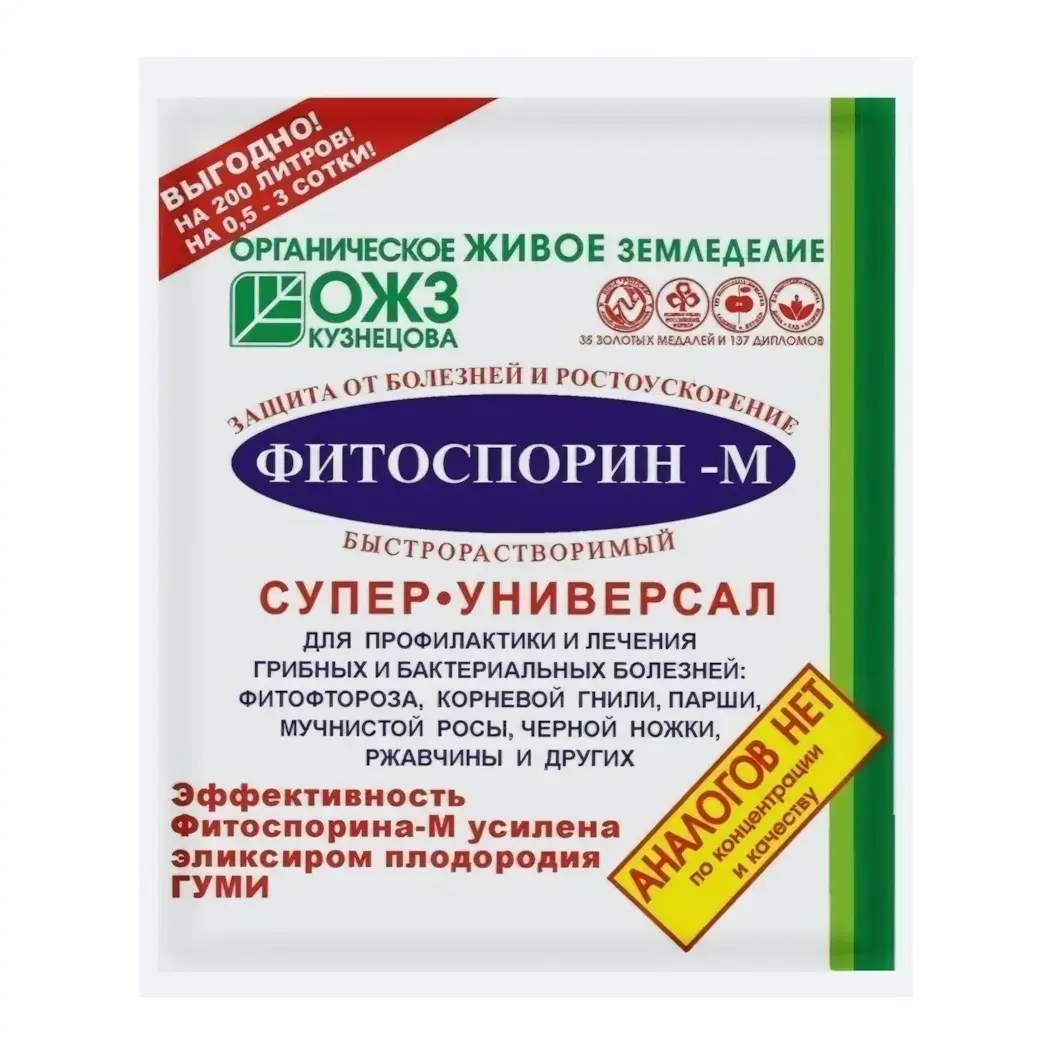 Биофунгицид «Фитоспорин-М» универсальный, паста 100г для защиты урожая от грибка и бактерий, 200 л/0.5 сотки