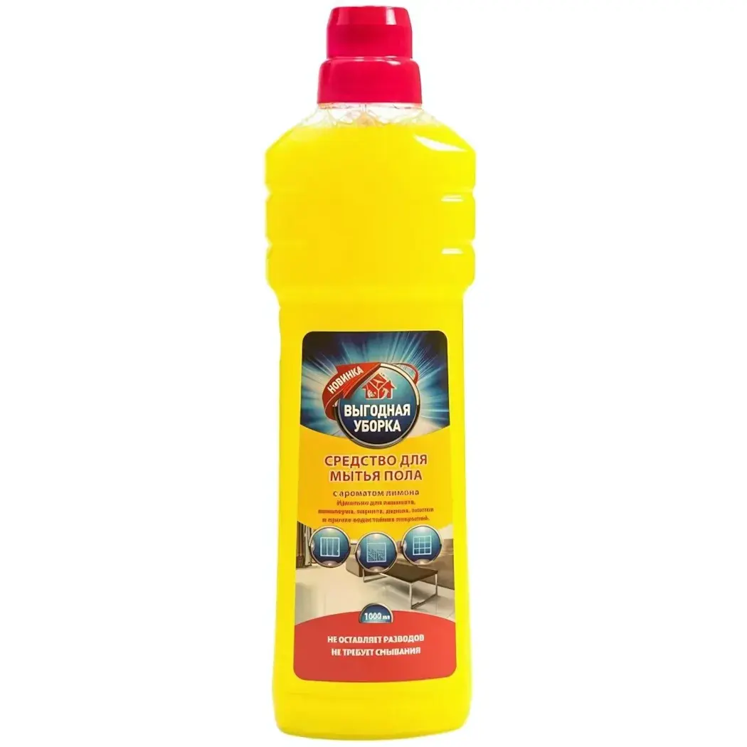 Объем бутылки составляет 1000 мл, что делает его идеальным выбором для регулярного использования. Ярко-желтый цвет упаковки не только привлекает внимание, но и подчеркивает свежесть лимонного аромата. Убедитесь, что ваш дом всегда чист и свеж с 'Выгодной уборкой'!