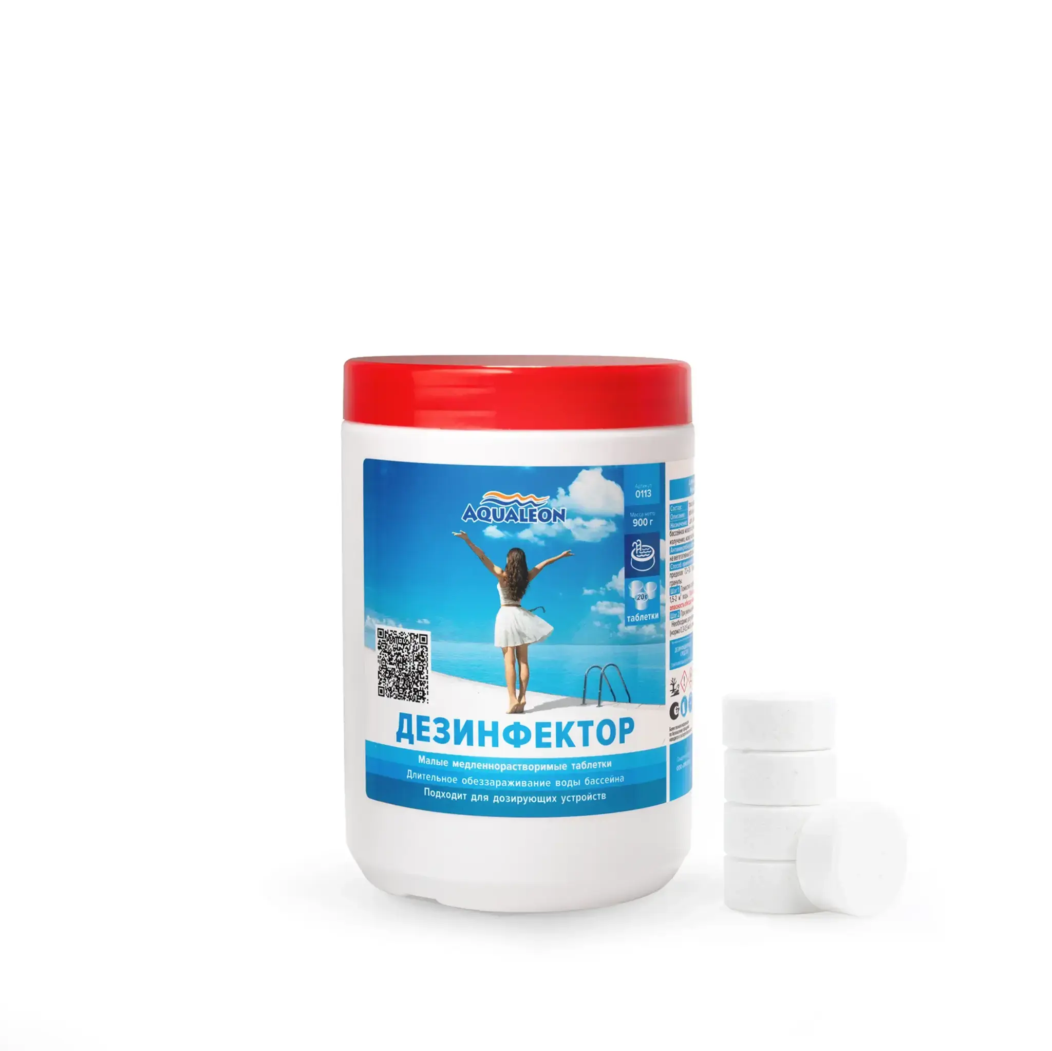 Каждая таблетка весит 20 г, а упаковка содержит 0,9 кг средства. Упаковка выполнена в белом цвете с красной крышкой, что делает ее заметной и удобной для хранения. Обеспечьте чистоту вашего бассейна с Aqualeon и наслаждайтесь каждым моментом на воде!