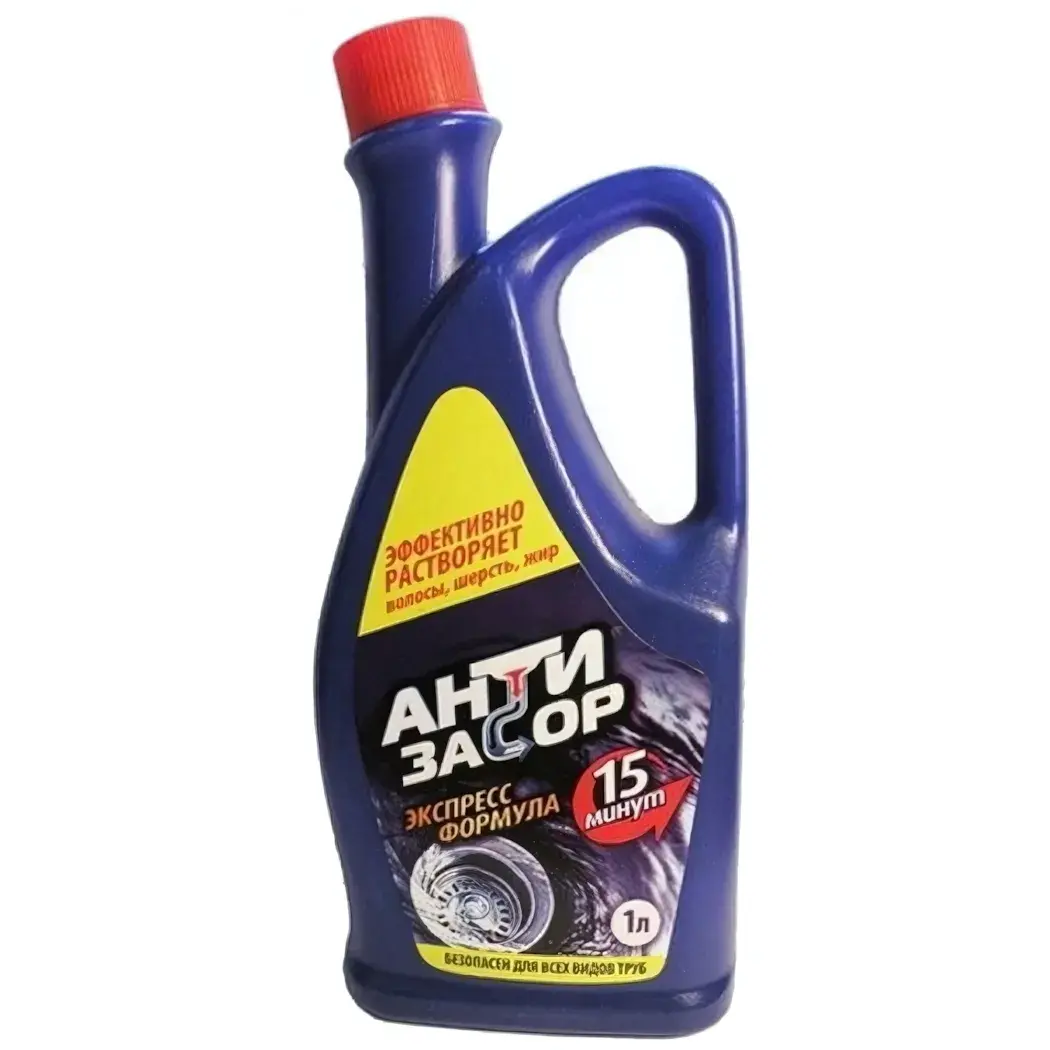 Средство упаковано в пластиковый флакон, который удобно держать и использовать. Его объем составляет 1 литр, что позволяет вам иметь под рукой достаточное количество средства для решения различных проблем с засорами. Не позволяйте засорам мешать вашему комфорту — выберите АНТИЗАСОР и наслаждайтесь чистотой в вашем доме!