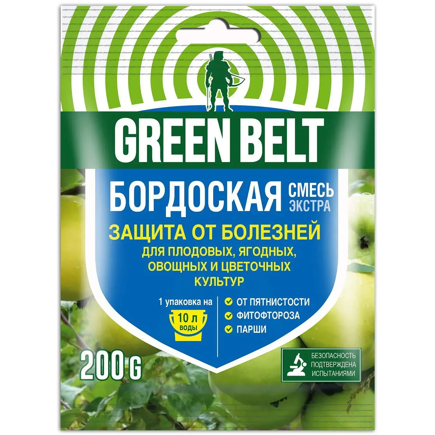 Упаковка «Бордоской смеси» выполнена в ярком зеленом цвете с белыми и голубыми элементами, что делает её заметной на полке. Объем упаковки составляет 200 г, что достаточно для обработки значительного количества растений. Используйте «Бордоскую смесь» для защиты ваших растений и наслаждайтесь здоровым и красивым садом!