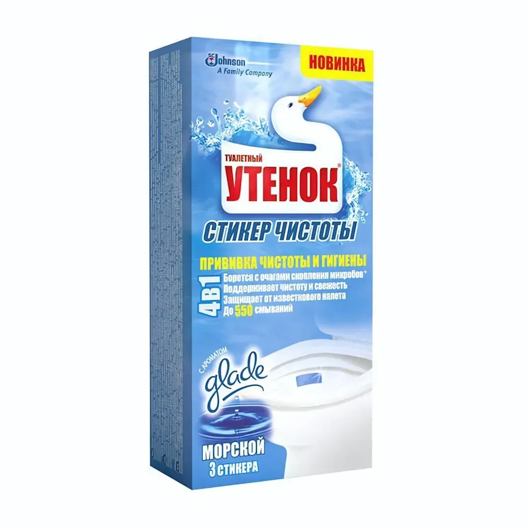 Каждый стикер имеет размер, удобный для установки в унитаз. Упаковка выполнена в голубом цвете с белыми и желтыми элементами, что делает ее привлекательной и заметной. 'Туалетный Утенок' - это не просто средство, а настоящая прививка чистоты и гигиены для вашего дома.