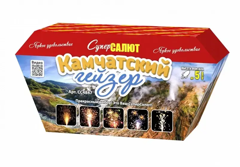 Фонтан «Камчатский гейзер» 10/1 упакован в стильную картонную коробку с изображениями фейерверков, что позволяет вам заранее оценить его эффект. Не упустите возможность сделать ваш праздник незабываемым с этим великолепным фейерверком!