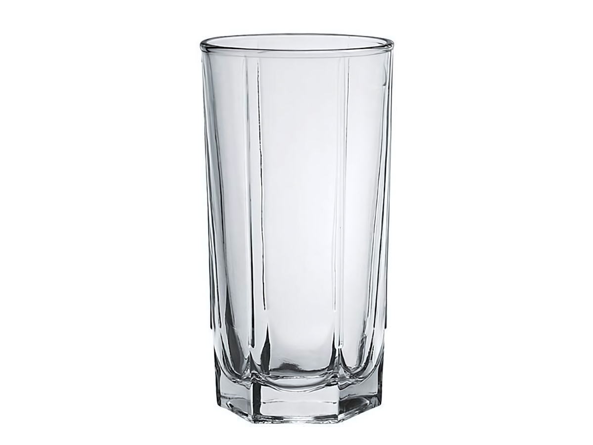 Стакан изготовлен из высококачественного стекла, что обеспечивает его долговечность и безопасность. Прозрачный цвет позволяет видеть содержимое, а прямые стенки и слегка сужающаяся к верху форма делают его удобным для питья.