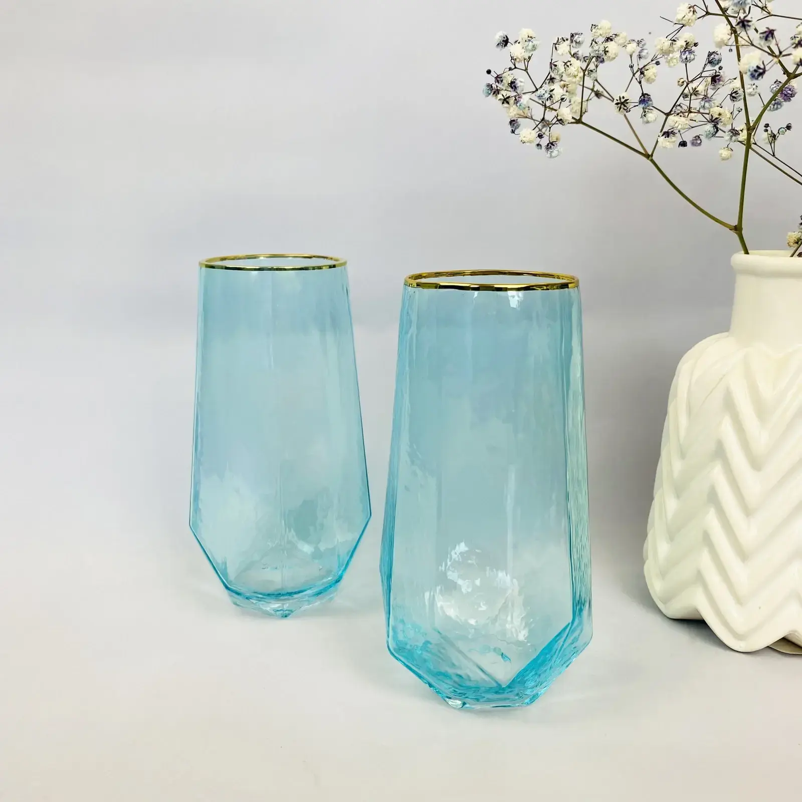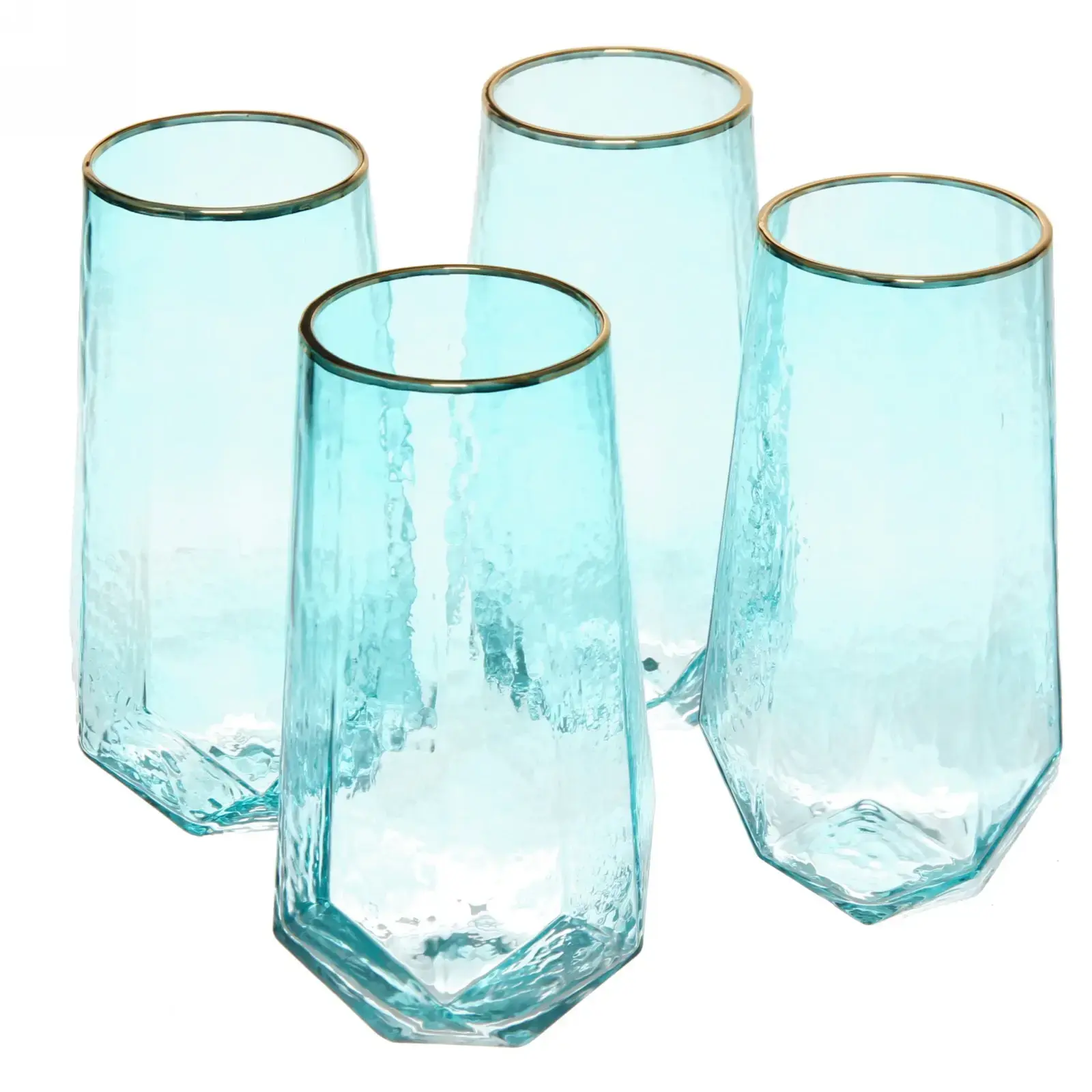Набор стаканов «ICE CRYSTAL», 4 шт, 400 мл, стекло, голубой с золотистой окантовкой