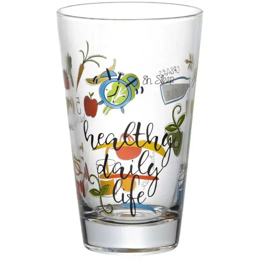 Этот стильный стакан объемом 400 мл станет незаменимым аксессуаром для вашего дома. Его яркий дизайн с изображениями фруктов и овощей, а также надписью «healthy daily life» создаст атмосферу здоровья и активного образа жизни. Прозрачное стекло позволяет наслаждаться красотой напитков, а многоцветные детали добавляют яркости вашему столу.