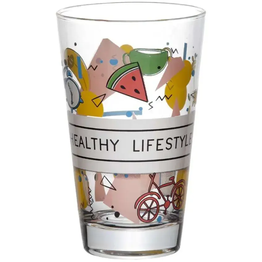 Этот высокий стакан объемом 400 мл станет незаменимым аксессуаром для вашего дома. Его стильный дизайн и яркие цвета создадут атмосферу уюта и радости, а надпись «HEALTHY LIFESTYLE» вдохновит вас на здоровый образ жизни. Стакан выполнен из качественного стекла, что гарантирует долговечность и надежность в использовании.