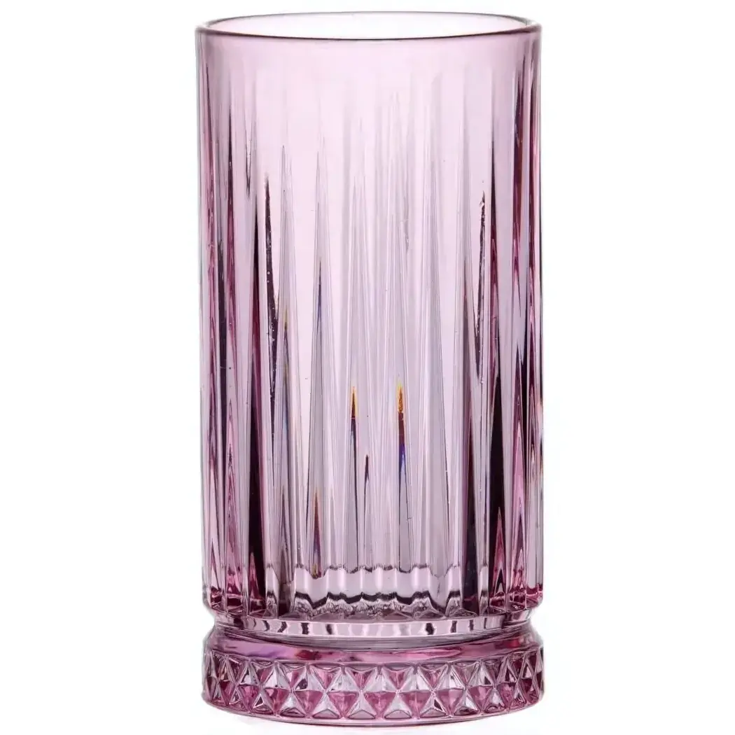 Стакан «Элизия» сочетает в себе изысканный дизайн и практичность. Его нежно-розовый оттенок и вертикальные рифлёные линии создают эффект игры света, а геометрический узор у основания добавляет ноту современности. Идеален для утреннего кофе, вечерних коктейлей или сервировки праздничного стола.