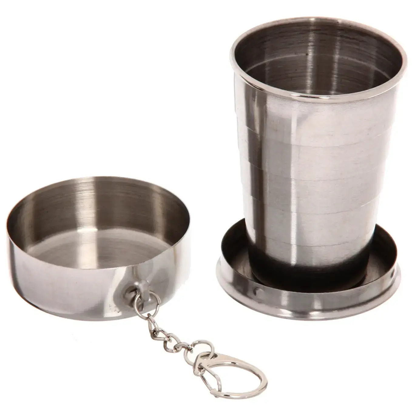 Стакан металлический складной, 50мл, с крышкой на цепочке, нержавеющая сталь