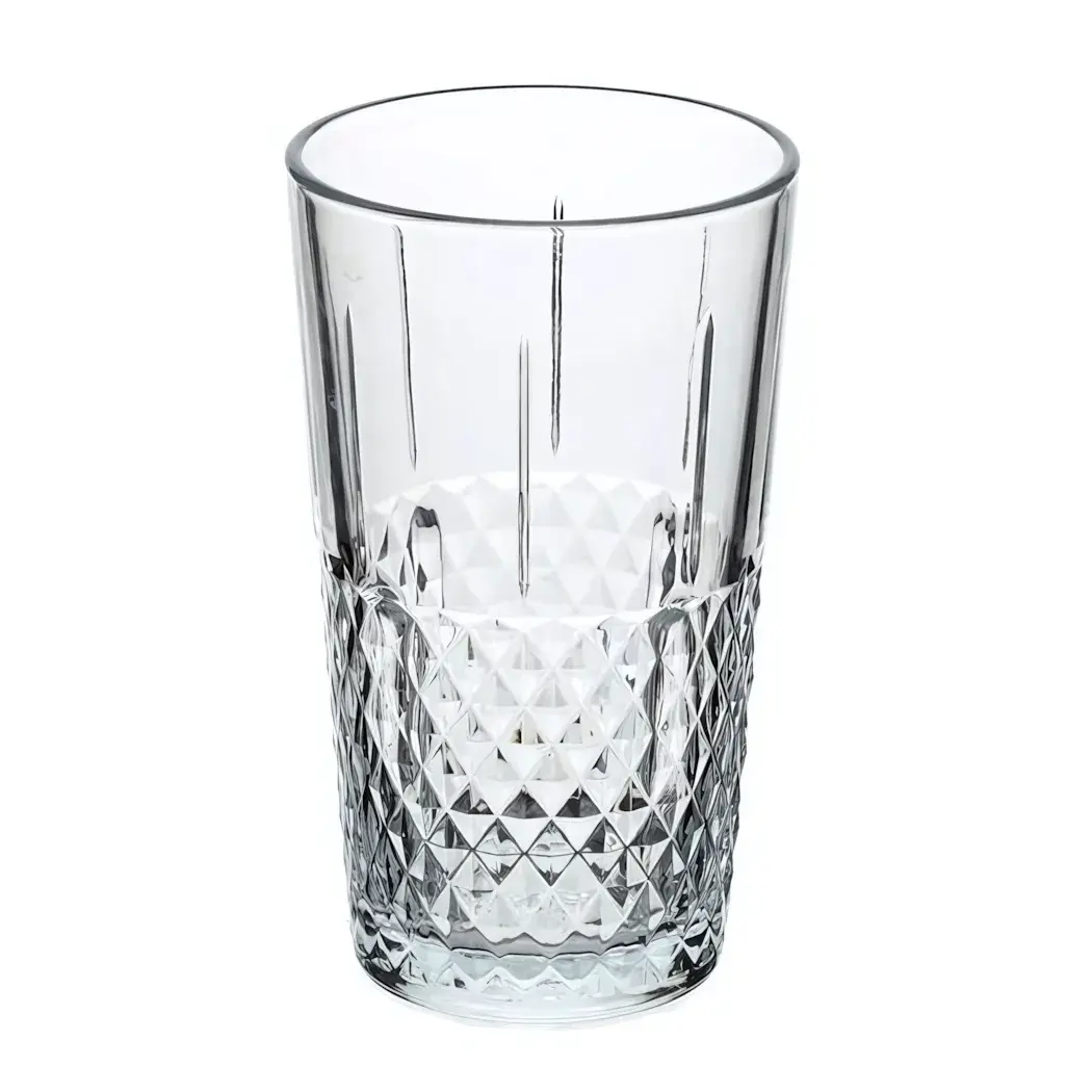 Этот стильный стакан станет незаменимым элементом вашей кухонной посуды. Его прозрачный цвет и элегантный дизайн с алмазным рельефом придают ему особый шарм, который украсит любой стол. Стакан объемом 515 мл идеально подходит для подачи напитков, будь то сок, вода или коктейли. Он не только красив, но и практичен, что делает его отличным выбором для повседневного использования.
