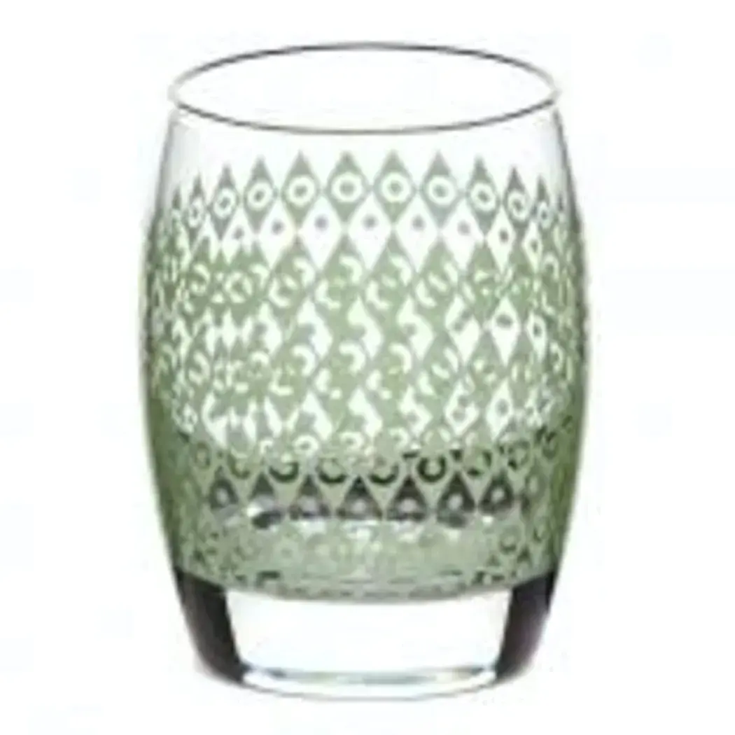 Стакан стеклянный «БОХО» 350 мл с зелёным геометрическим узором, рельефная поверхность