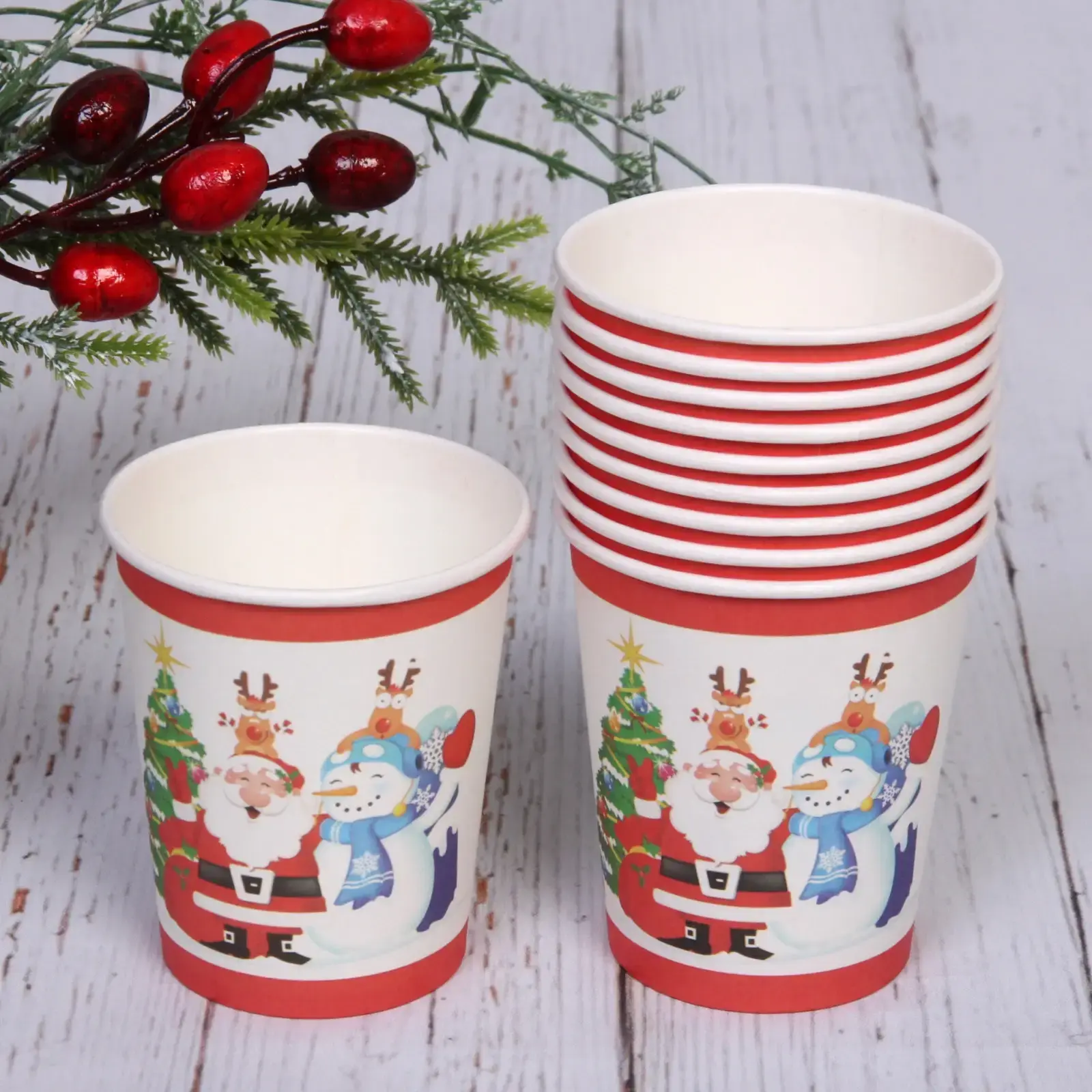 Эти яркие стаканчики с новогодним дизайном мгновенно наполнят ваше торжество атмосферой Рождества. Простые в использовании и не требующие мытья — идеальное решение для зимних вечеринок.