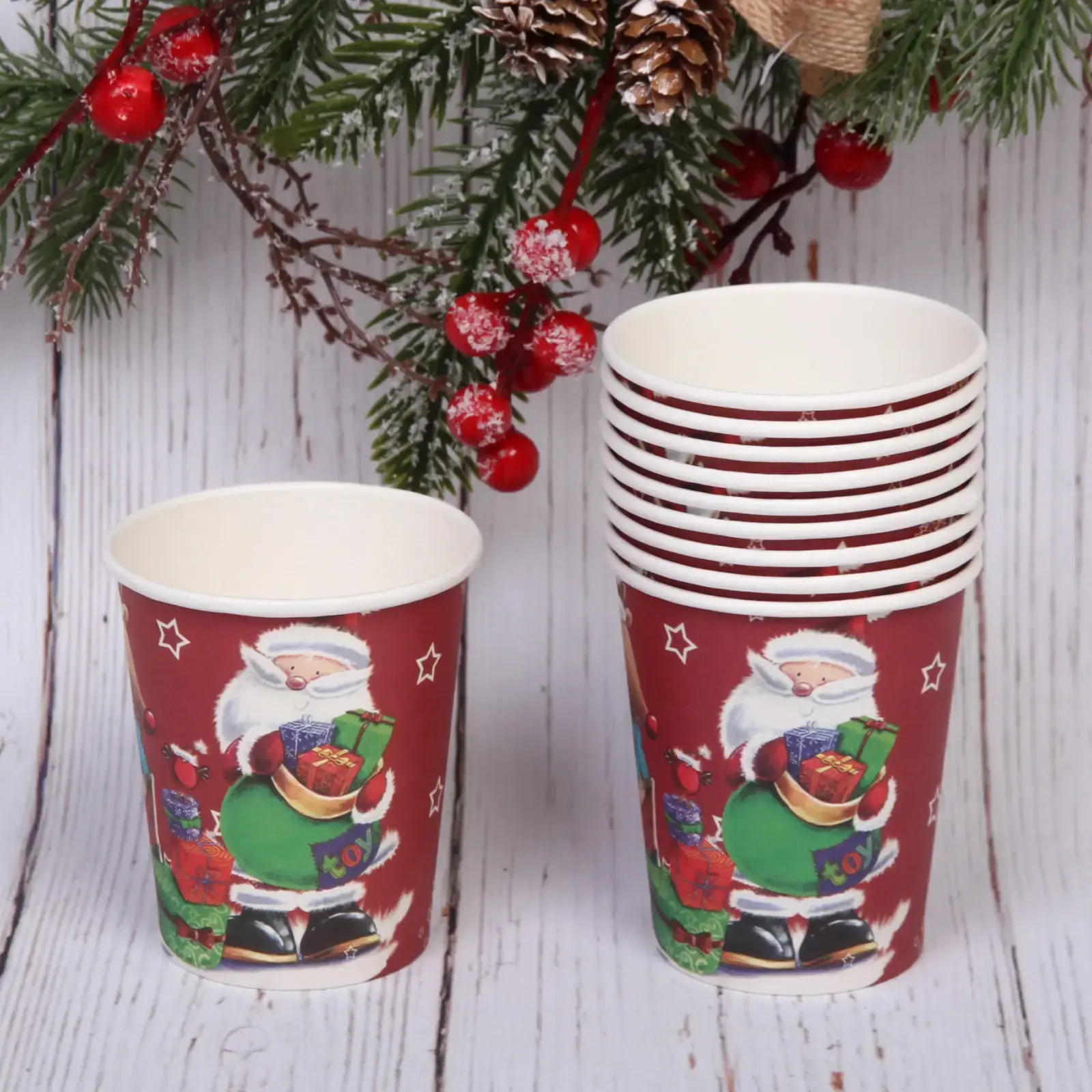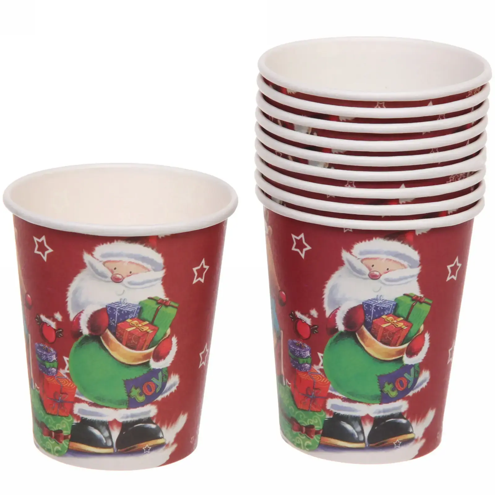 Стакан бумажный 0,2л 'Дед Мороз с Оленем', набор 10 шт, красный