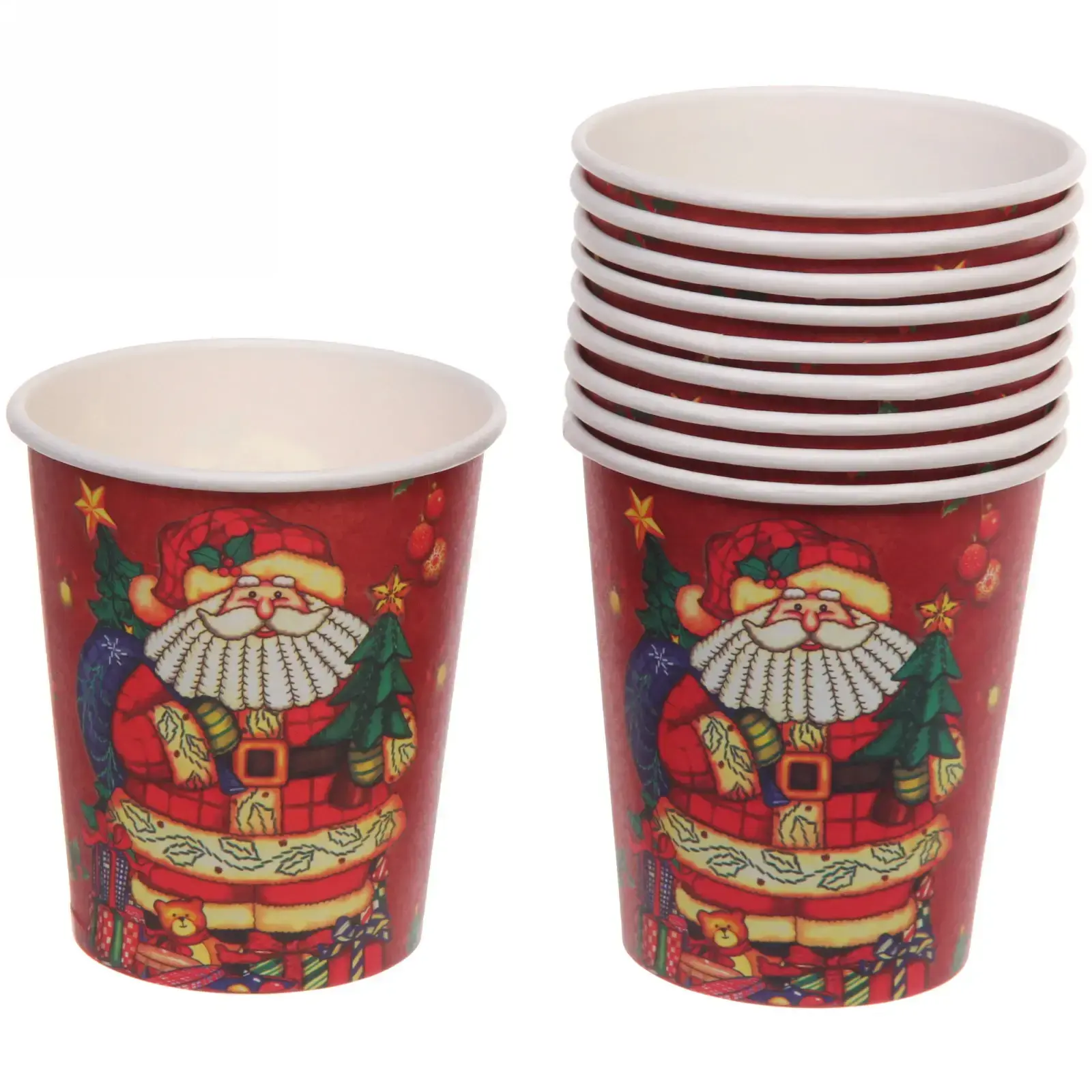 Стакан бумажный 0,2л "Дед Мороз с подарочками", набор 10 шт, красный