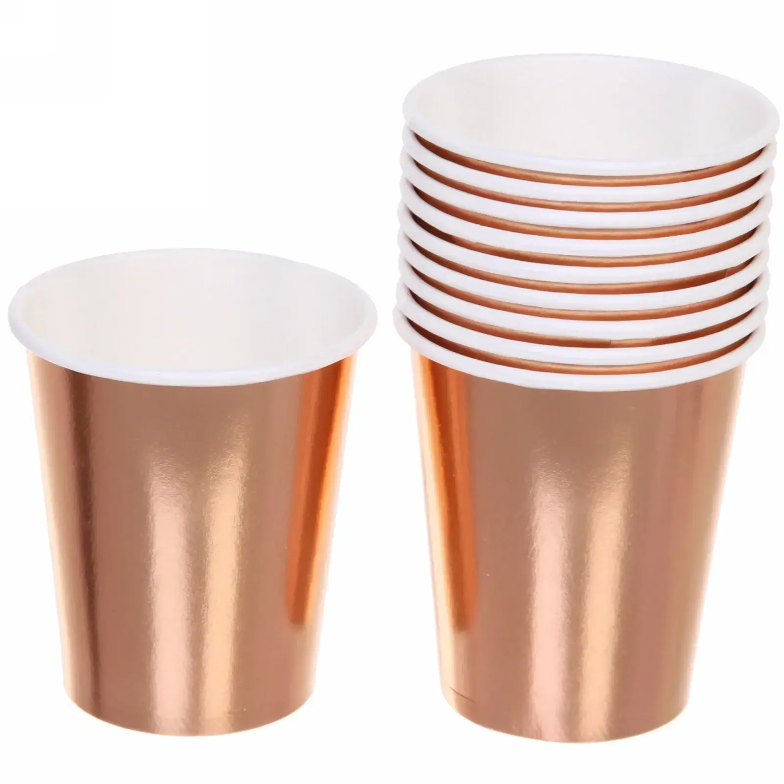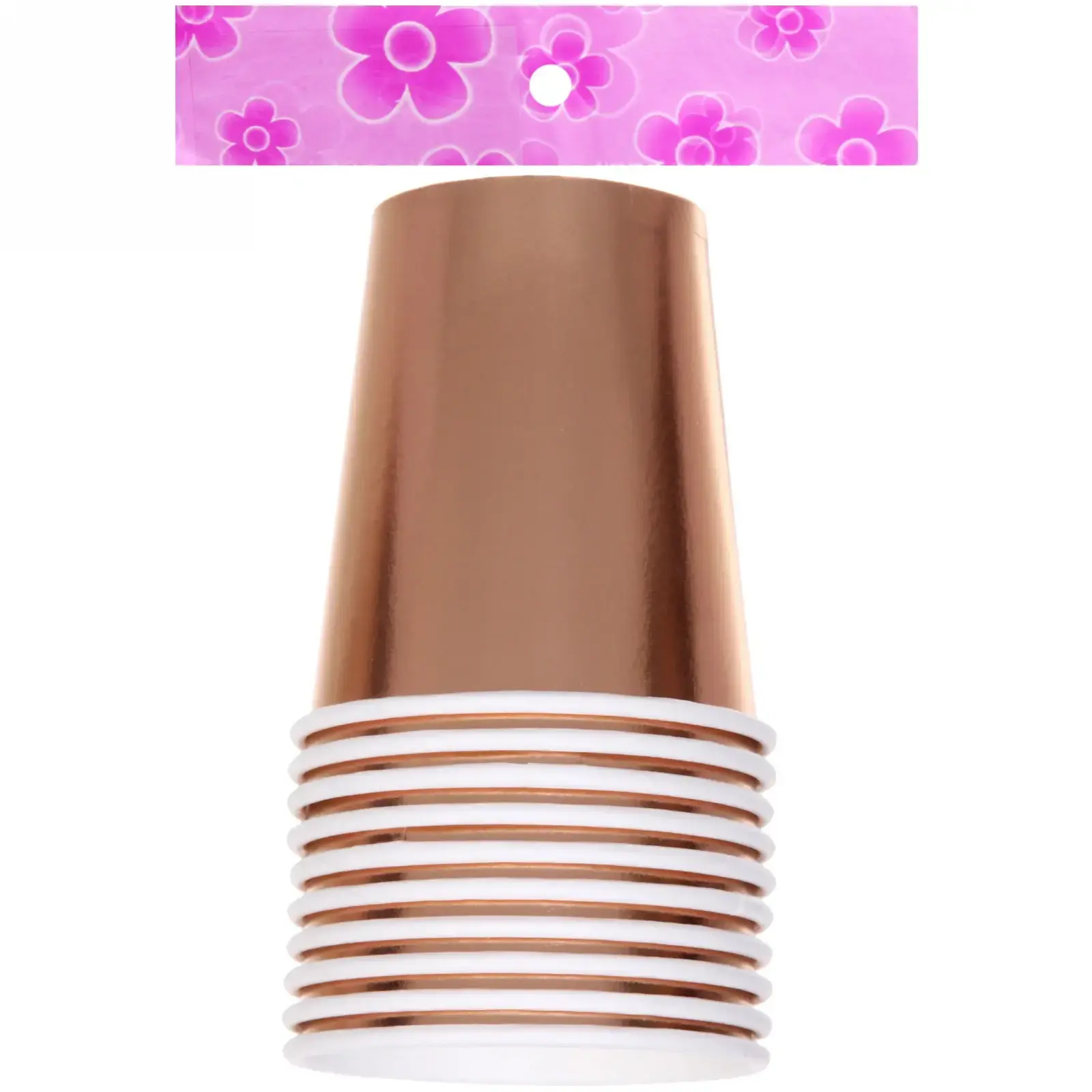 Погрузитесь в атмосферу веселья и уюта с набором бумажных стаканов «Диско»! Эти стаканы не только стильные, но и практичные, что делает их идеальным выбором для любых мероприятий — от домашних вечеринок до больших праздников. Розовое золото добавляет элегантности, а удобный объем в 0,2 литра позволяет наслаждаться любимыми напитками без лишних хлопот.