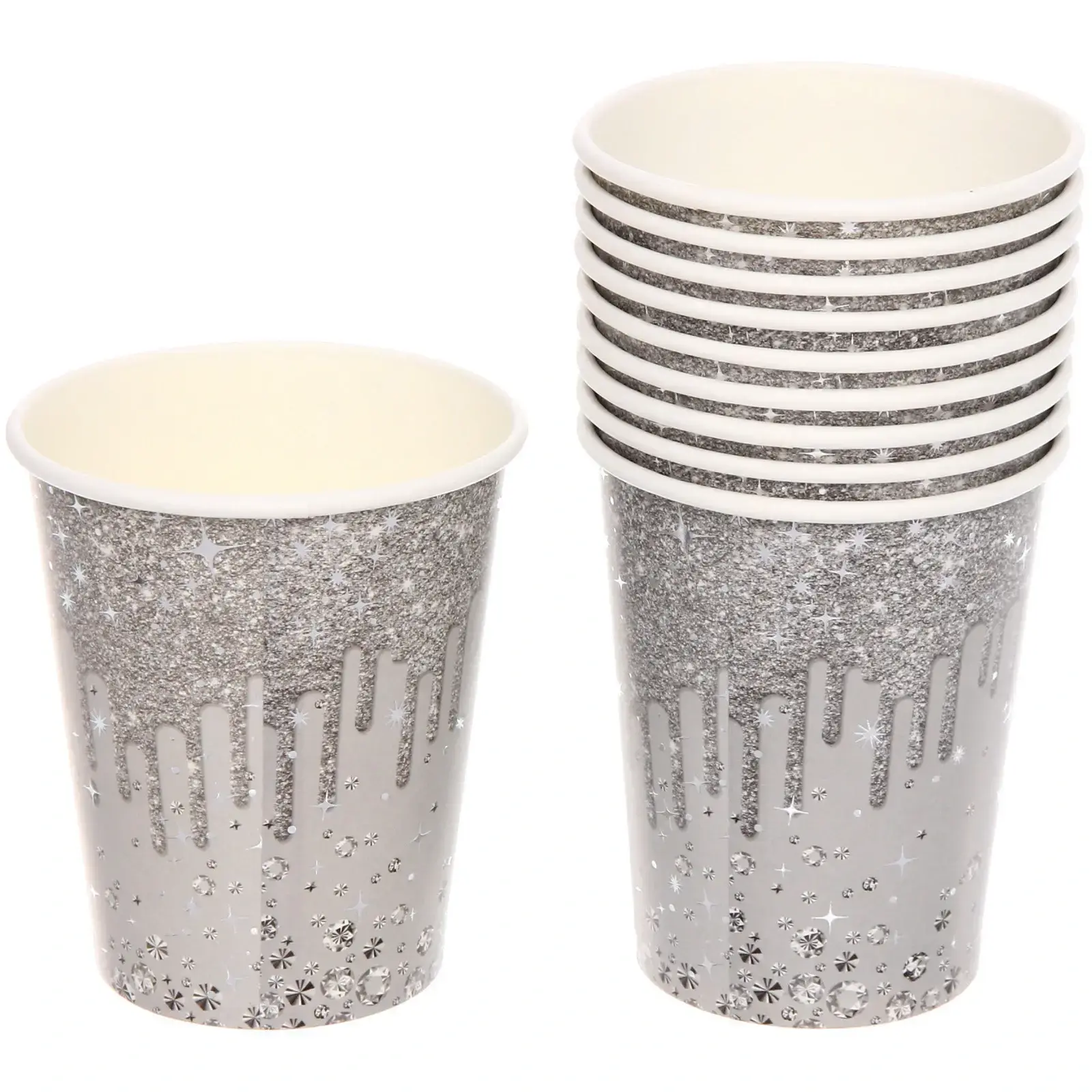 Эти бумажные стаканы с изысканным серебристым блеском и узорами в виде снежинок создадут атмосферу праздника за вашим столом. Объём 0,2 литра идеально подходит для горячих и холодных напитков – от ароматного чая и кофе до свежих соков. Яркий декоративный дизайн с эффектом блестящей краски добавит торжественности любому мероприятию.