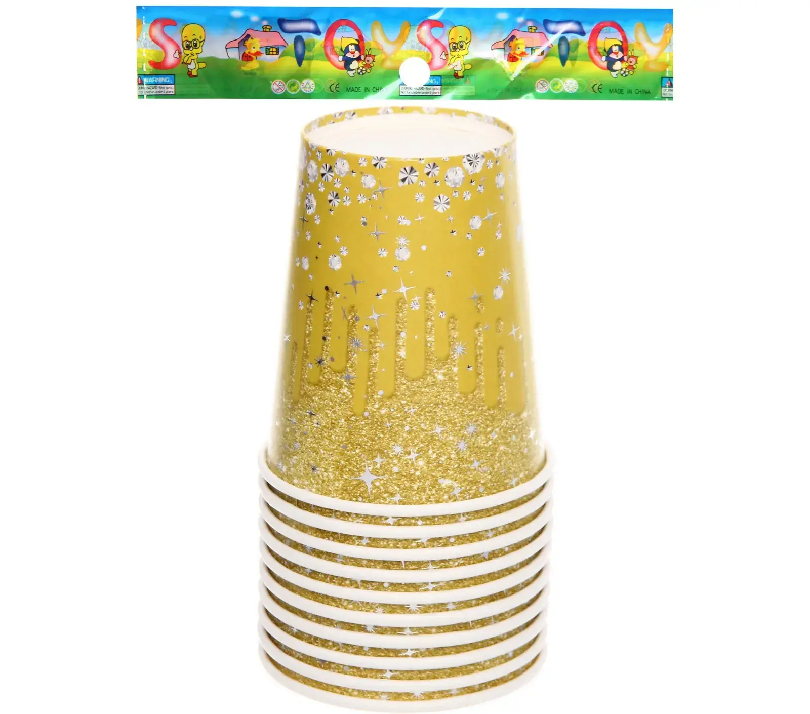 Одноразовые бумажные стаканы из набора «Галактика» в оттенке шампань добавят утончённости любому мероприятию. Золотистая поверхность с блестящим эффектом, серебристыми звёздами и снежинками создаёт атмосферу праздника, а белая окантовка по краю подчёркивает аккуратный дизайн. Эти стаканы впечатляют не только красотой, но и практичностью.