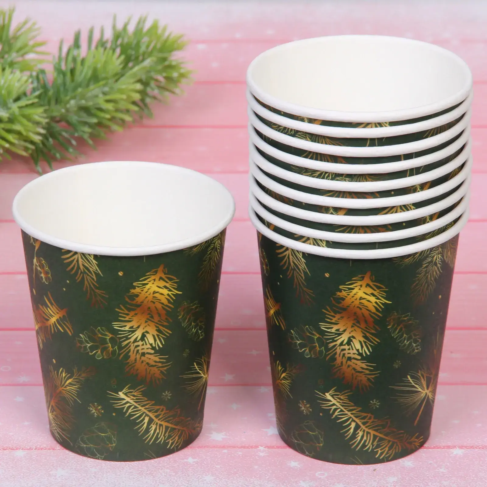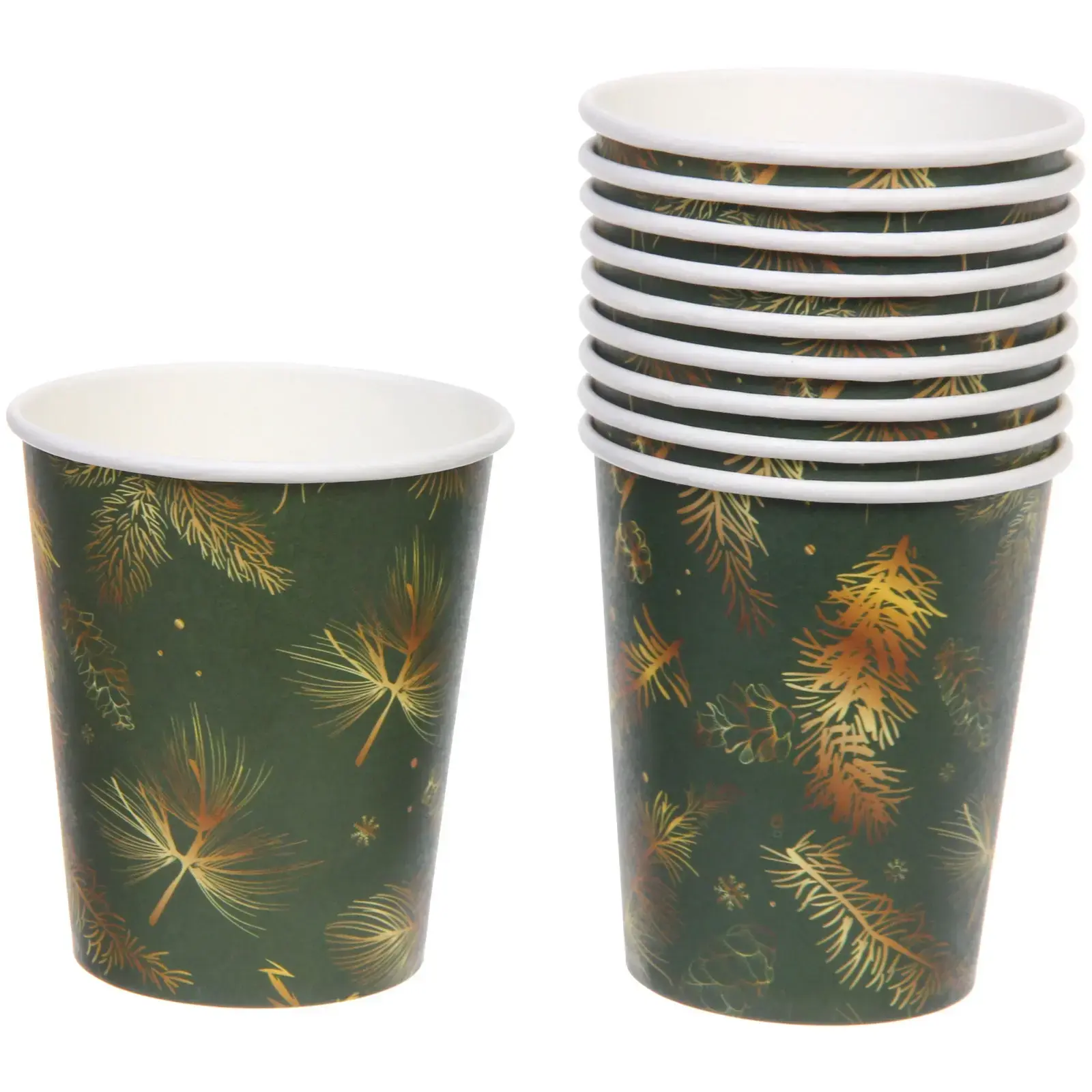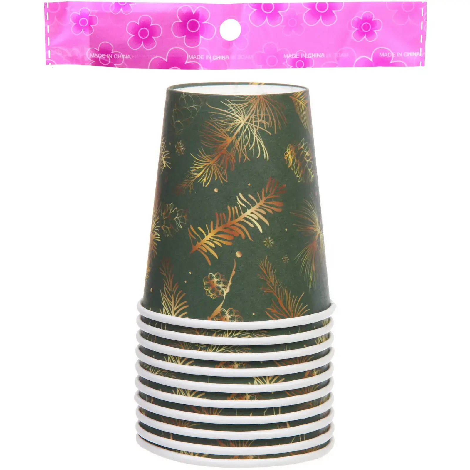 Стаканы имеют объем 0,2 литра и поставляются в наборе из 10 штук, что делает их идеальными для больших праздников и мероприятий. Они легкие и компактные, что позволяет легко взять их с собой на пикник или вечеринку. Благодаря стильному дизайну с изображением хвойных веток и шишек, стаканы добавят атмосферу уюта и праздника в любое событие.