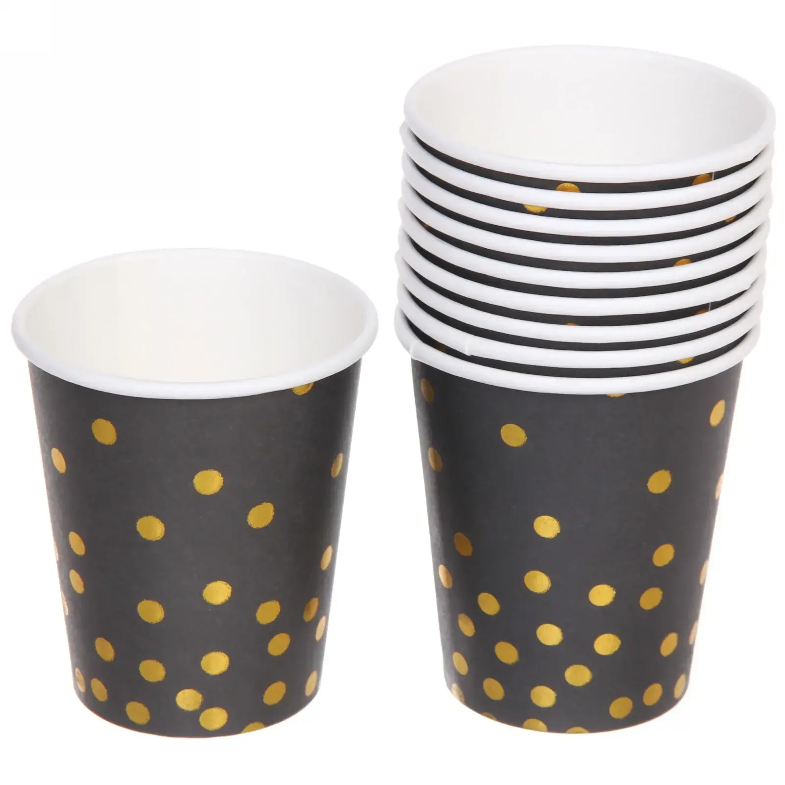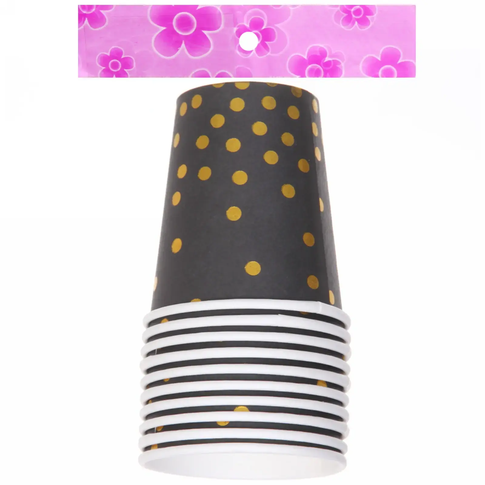 Создайте атмосферу праздника с бумажными стаканами «Конфетти». Эти стильные стаканы черного цвета с золотыми точками добавят изысканности любому мероприятию. Они идеально подходят для сервировки напитков на днях рождения, свадьбах и других торжествах. Удобные и практичные, стаканы обеспечивают комфортное использование и легкость в утилизации.
