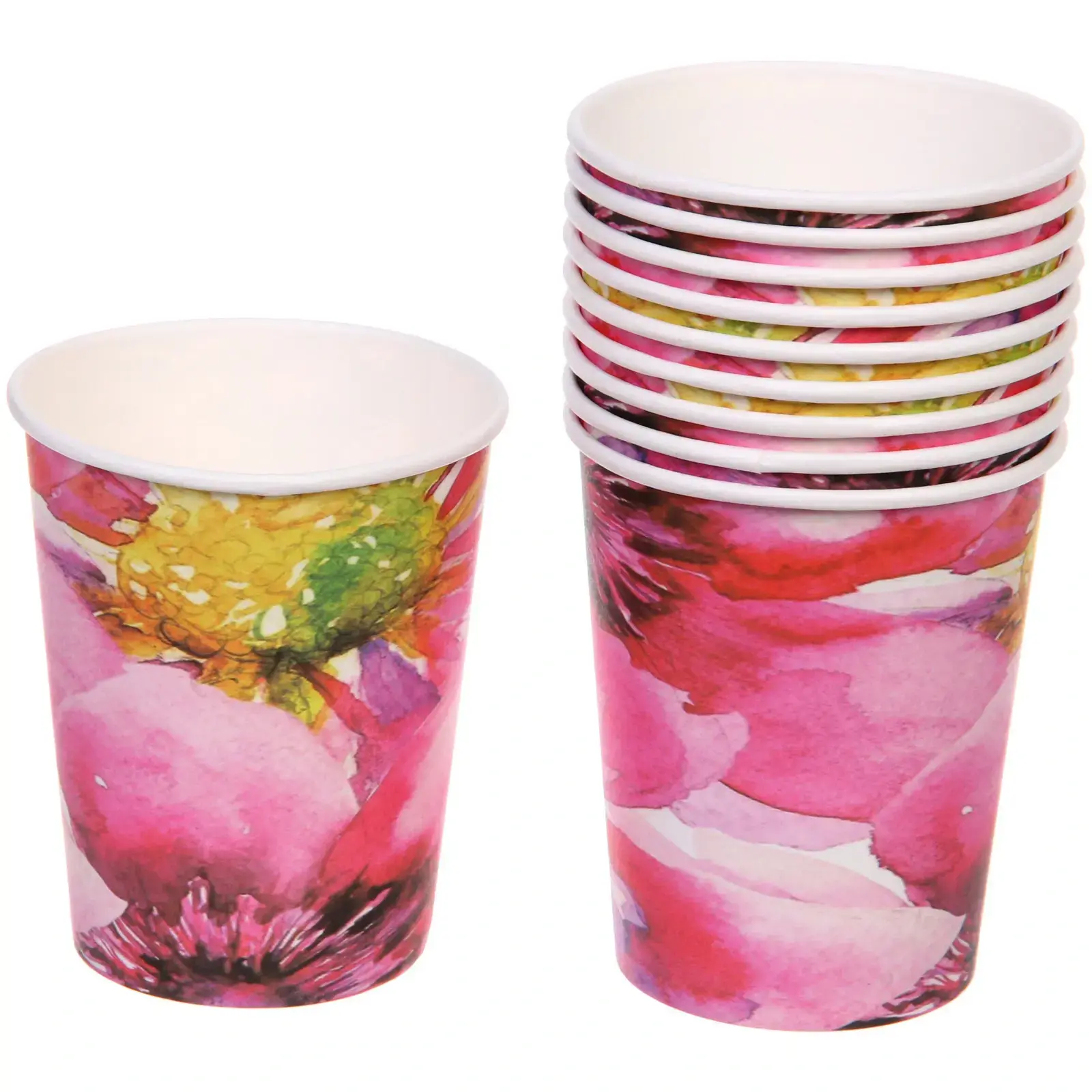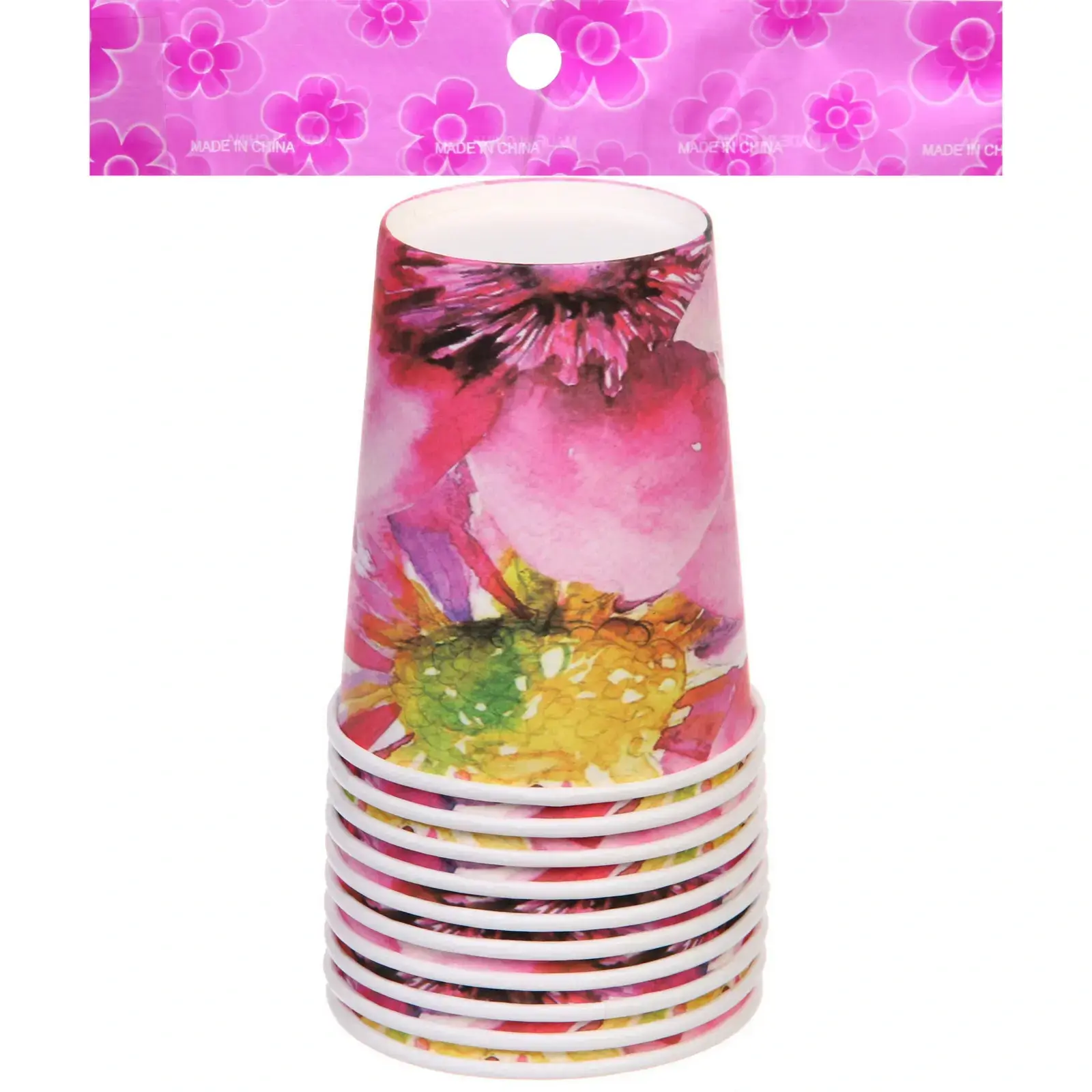 Стакан бумажный 0,2л, набор 10 шт с цветочным принтом «Летнее настроение»