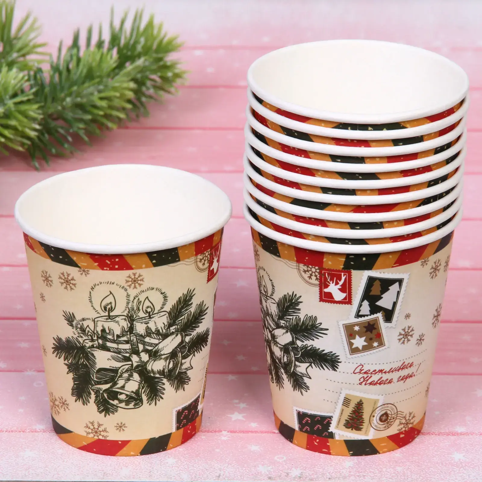 Создайте атмосферу праздника с нашими бумажными стаканчиками объемом 0,2 литра. Эти стаканчики идеально подходят для горячих и холодных напитков, позволяя вам наслаждаться любимыми угощениями без лишних забот. Легкие и удобные, они не требуют мытья, что делает их идеальным выбором для новогодних вечеринок и семейных сборищ.