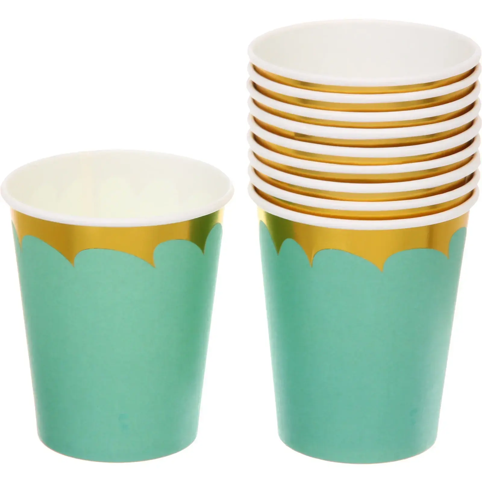 Создайте атмосферу уюта и радости с помощью бумажных стаканов «Праздничный день». Эти стаканы не только удобны, но и добавляют стильный акцент к любому мероприятию. Их изумрудный цвет с золотистой каймой придаст вашему столу праздничный вид, а прочный бумажный материал обеспечит надежность при использовании.