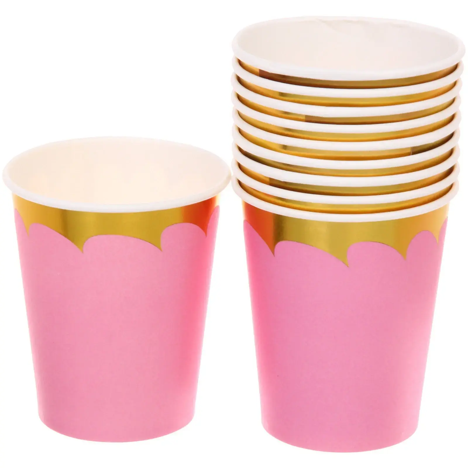 Создайте атмосферу уюта и радости с помощью бумажных стаканов «Праздничный день». Эти стаканы не только красивы, но и практичны, что делает их отличным выбором для любых мероприятий. Розовый цвет с золотой отделкой добавляет изысканности, а удобный объем 0,2 литра идеально подходит для подачи напитков на детских праздниках, днях рождениях и других торжествах.