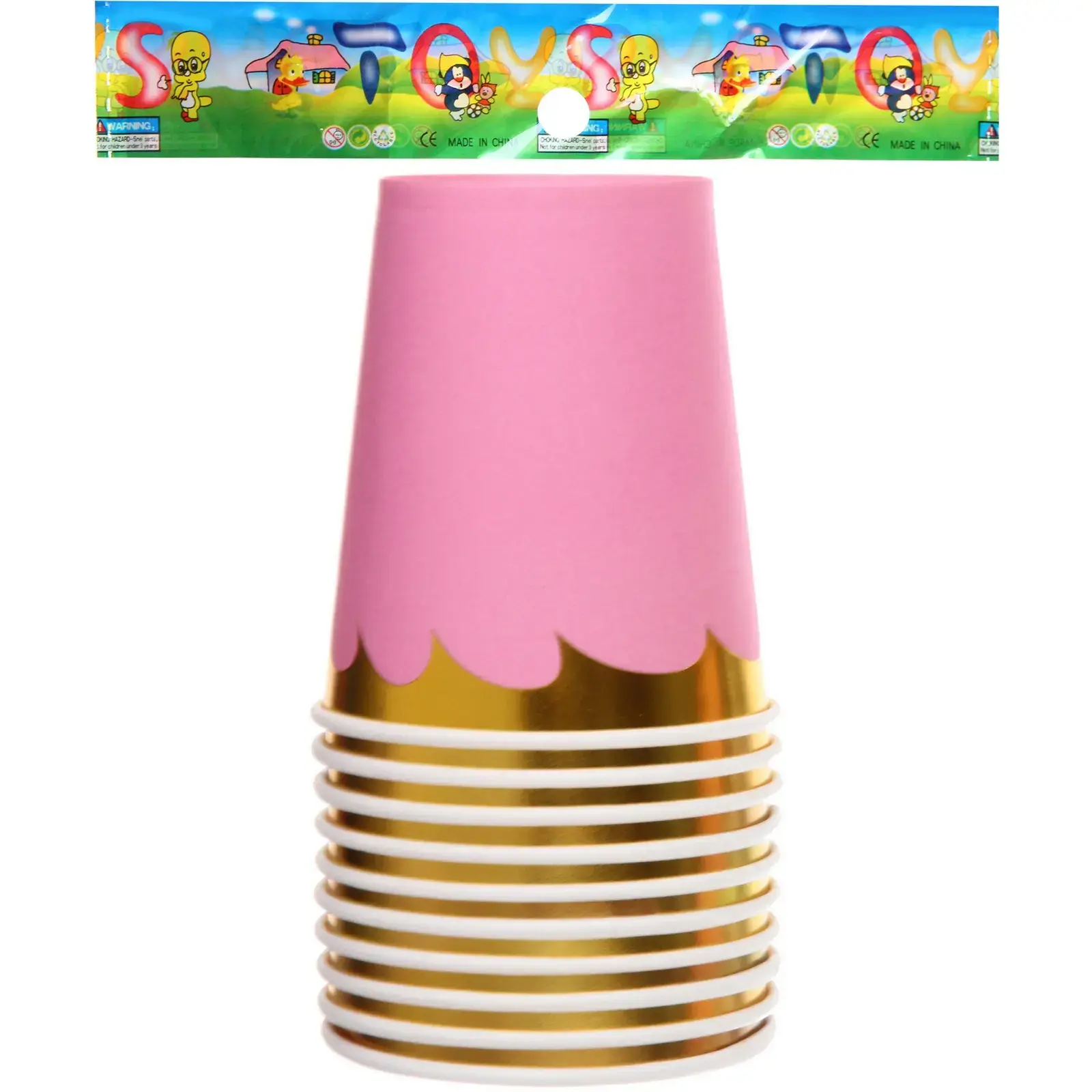В наборе 10 стаканов, что позволяет вам легко организовать праздник для большой компании. Каждый стакан выполнен из качественной бумаги, что гарантирует их прочность и надежность. Золотая отделка придает стаканам особый шарм, делая их подходящими для любых торжеств.