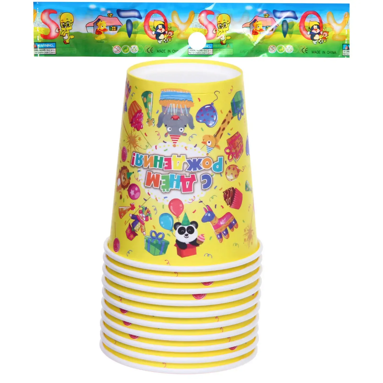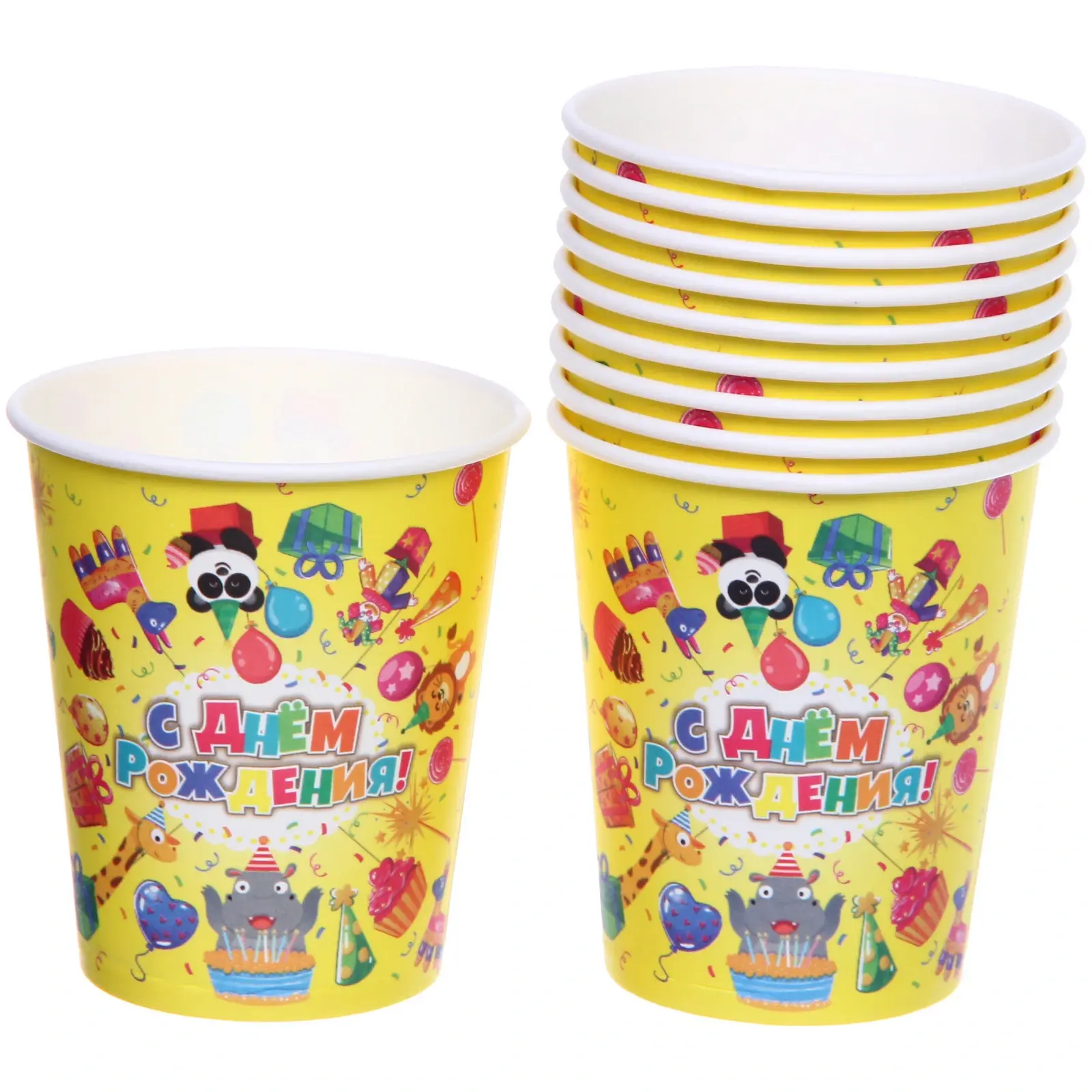 Стакан бумажный 0,2л 'С днем рождения! Зверюшки', набор 10 шт, праздничный дизайн