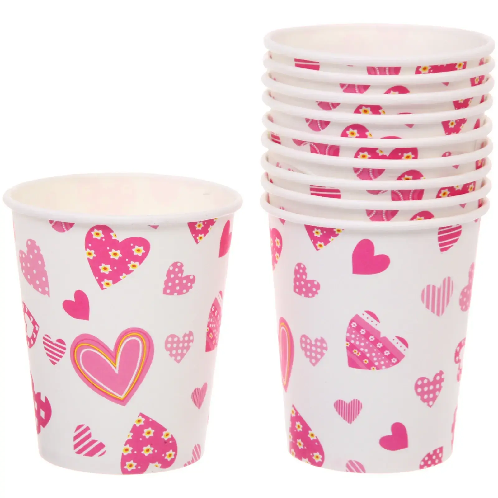В упаковке вы найдете 10 стаканов, каждый из которых украшен милыми сердечками и цветочками. Стаканы имеют конусообразную форму, что делает их удобными для держания. Они идеально подходят для использования на открытых мероприятиях, пикниках или домашних праздниках. Не упустите возможность сделать ваш праздник незабываемым с этими стильными стаканами!