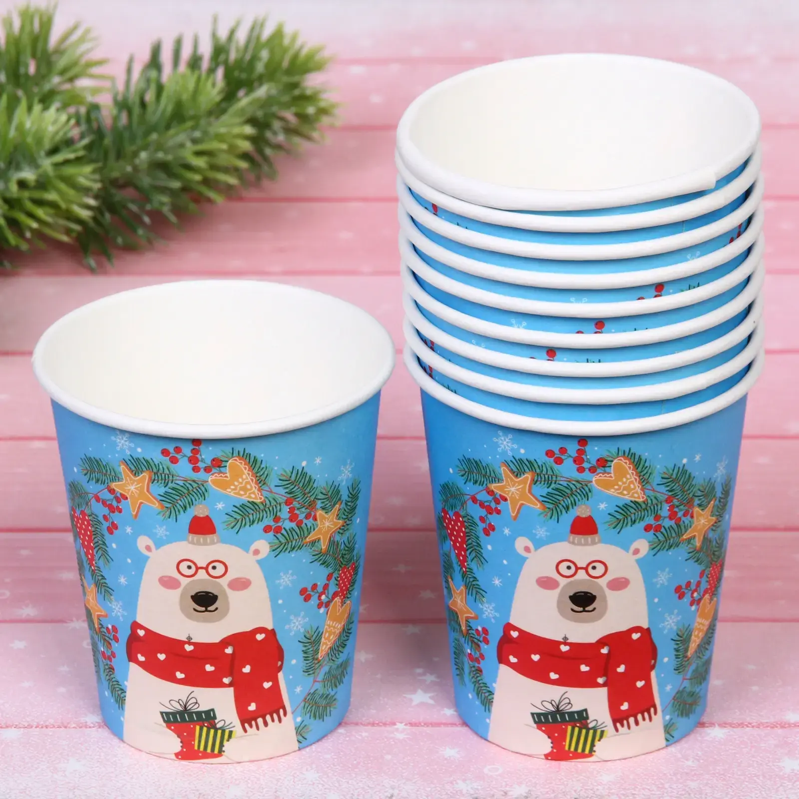 Размер стаканов стандартный, что делает их универсальными для любых напитков. Они идеально подходят для горячего шоколада, соков или газированных напитков. Удобная форма и легкий вес позволяют легко брать стаканы с собой на пикники или выездные мероприятия. Выбирайте «Северный мишка» и наслаждайтесь праздником без лишних забот!
