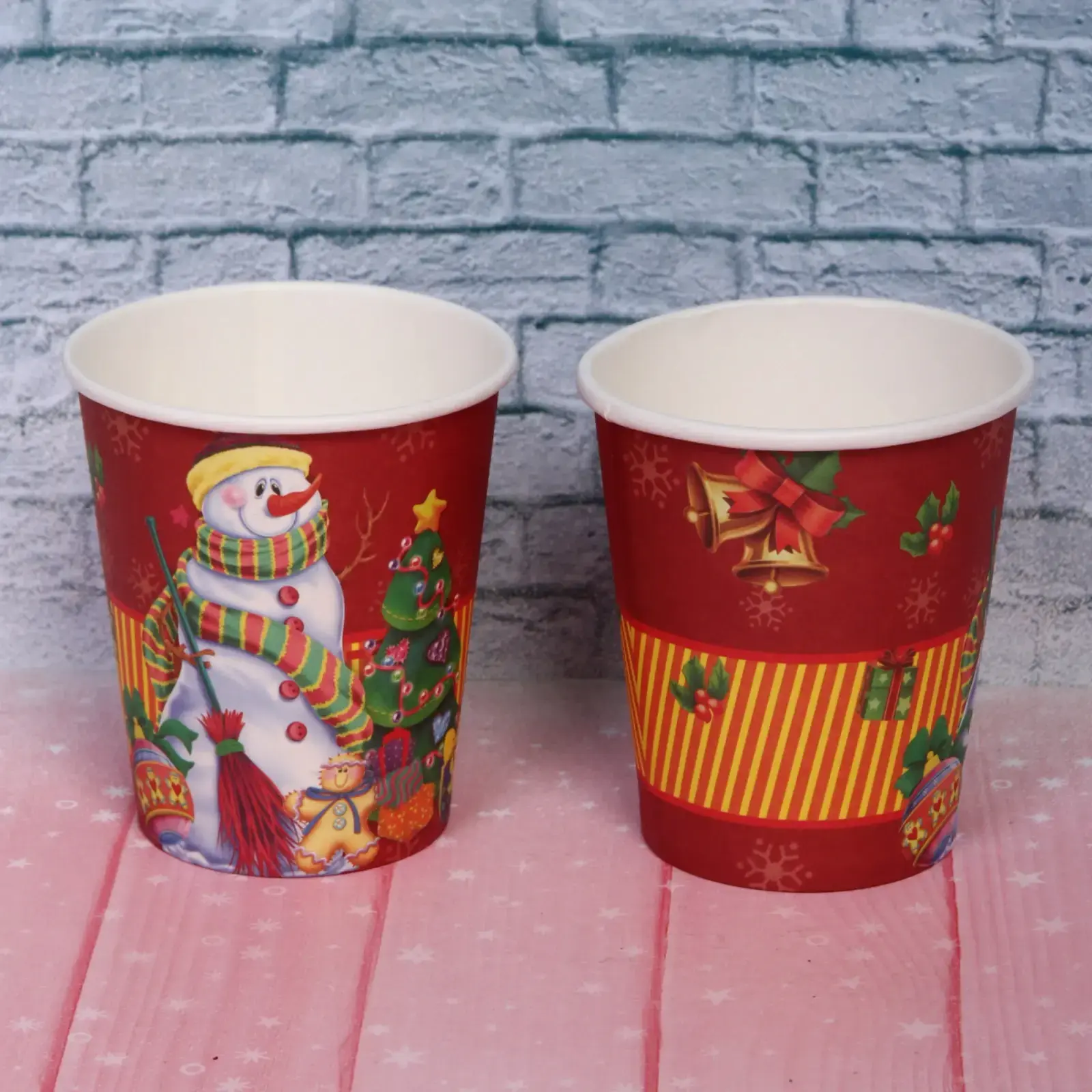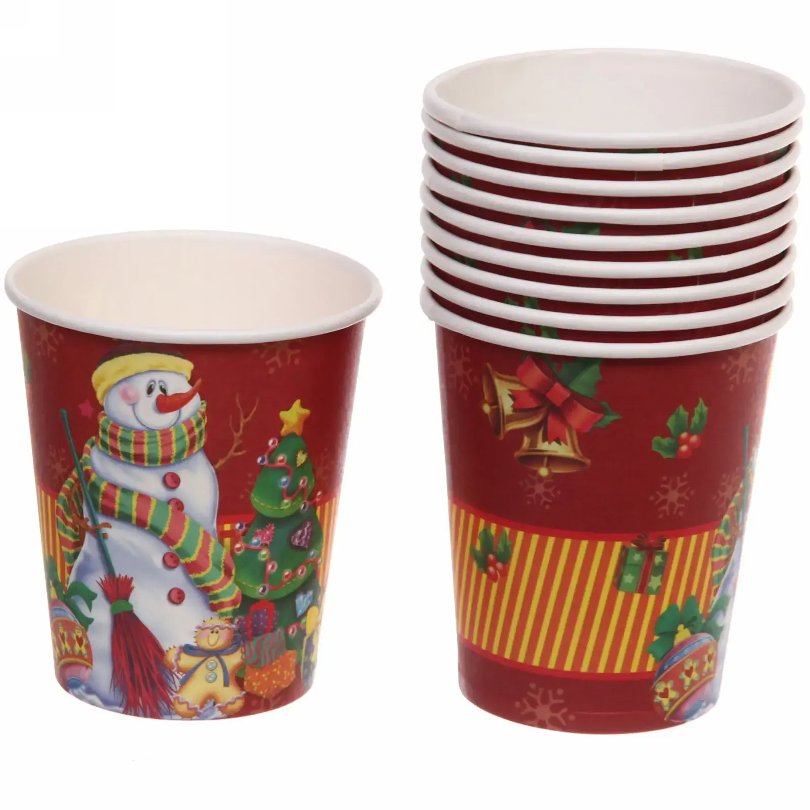 Стаканы бумажные новогодние "Снеговик у ёлки", 0,2л, 10 штук