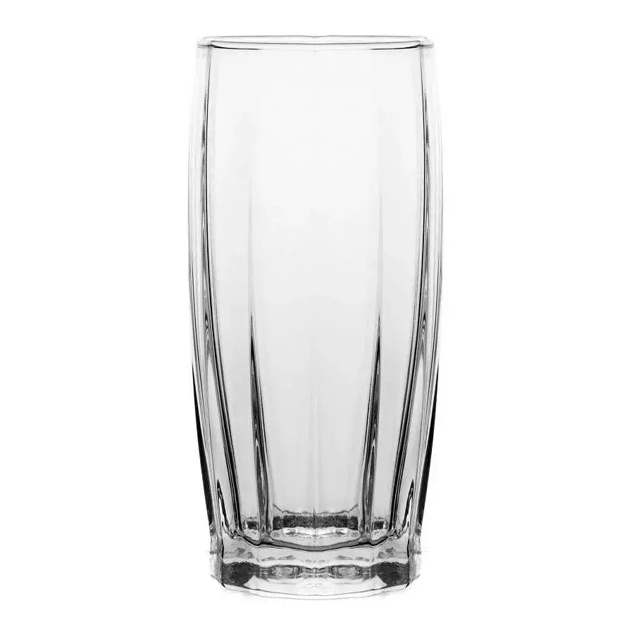 Объем 320 мл оптимален для подачи соков, молочных коктейлей и безалкогольных напитков. Классический цилиндрический силуэт с декоративными гранями сочетает функциональность и эстетику. Прозрачное стекло демонстрирует содержимое, идеально вписываясь в любой сервиз.