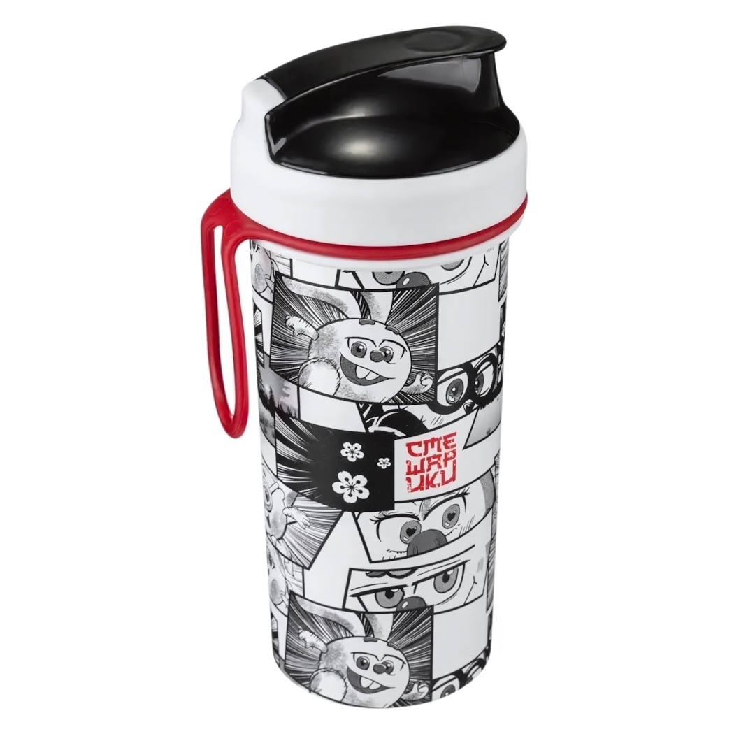 Стакан предназначен для прохладительных напитков, таких как вода, соки и морсы. Его можно легко взять с собой благодаря удобной ручке и прочной петельке, за которую стакан можно держать или прикрепить к поясу или рюкзаку. Откидывающаяся крышка надежно закрывает стакан, исключая протекание, что делает его идеальным для активных детей.