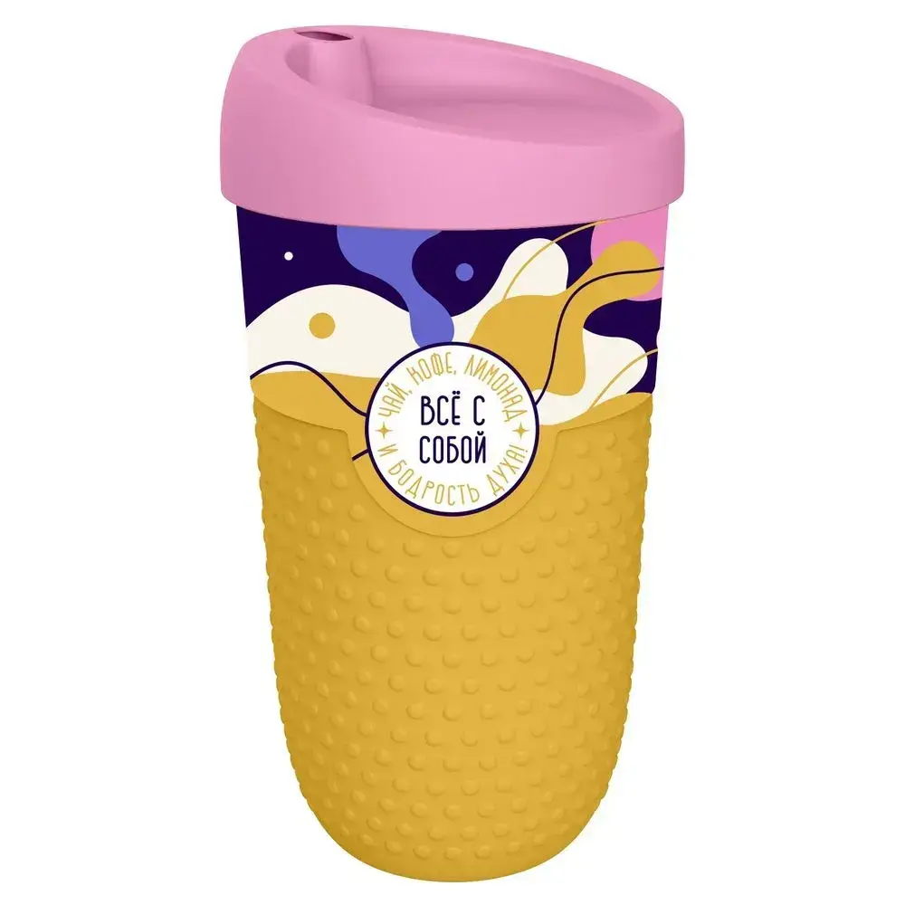 Стакан для напитков Phibo с крышкой, рельефный декор, 550 мл, цвет в ассортименте