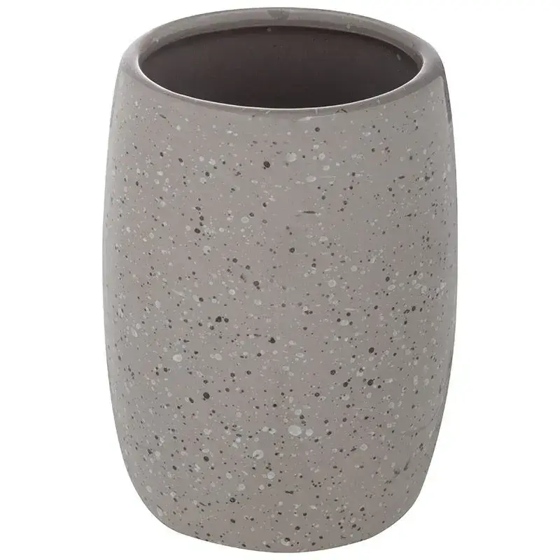 Стакан подойдет для хранения зубных щеток, паст, косметических инструментов и других мелочей. Нейтральный серый оттенок с деликатными блестками гармонично сочетается с любым стилем оформления — от классики до современного минимализма.