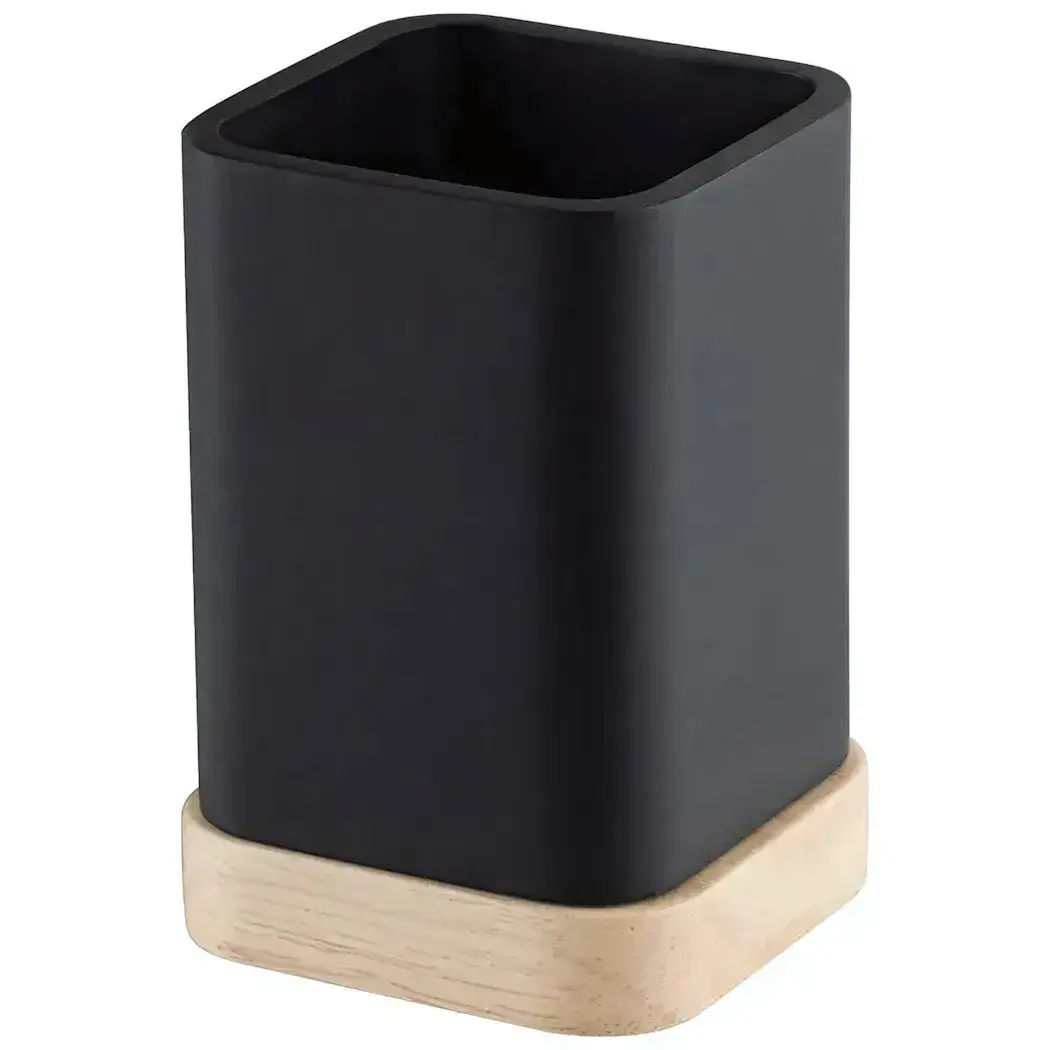 Стакан для ванной Sydney, пластик, черный, прямоугольный с закругленными углами, устойчивое основание