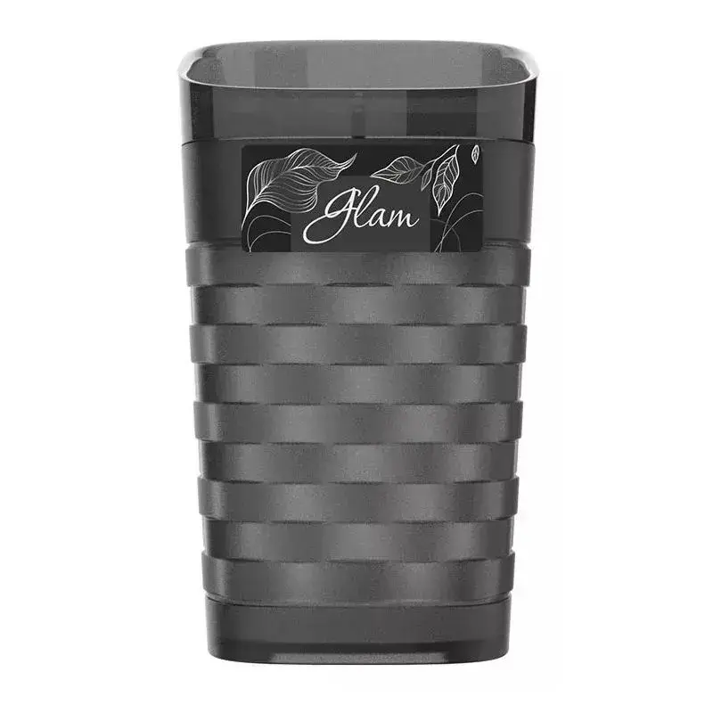 Стакан для зубных щеток Glam выполнен из прочного пластика и идеально подходит для хранения щеток, паст и других гигиенических аксессуаров. Благодаря классическому дизайну с рельефными линиями и прозрачной крышке, он обеспечивает порядок и аккуратность вашей ванной.