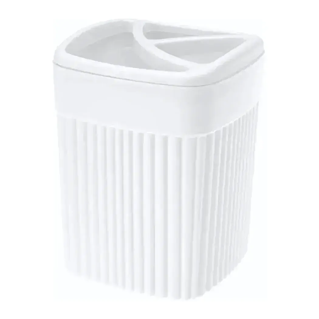Стакан изготовлен из качественного пластика, устойчивого к влаге и бытовой химии. Компактные размеры (9 см в диаметре, 11.9 см высота) позволяют разместить аксессуар даже в небольших пространствах. Объём 650 мл оптимален для хранения стандартных щеток и пасты.
