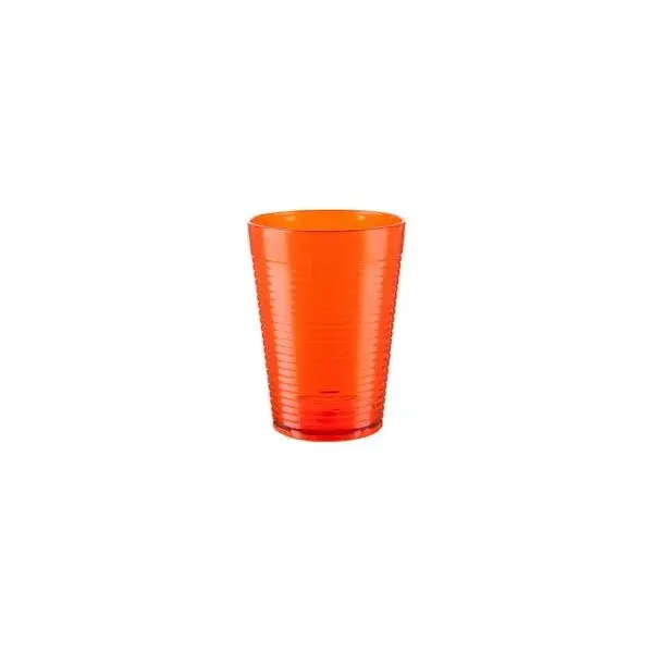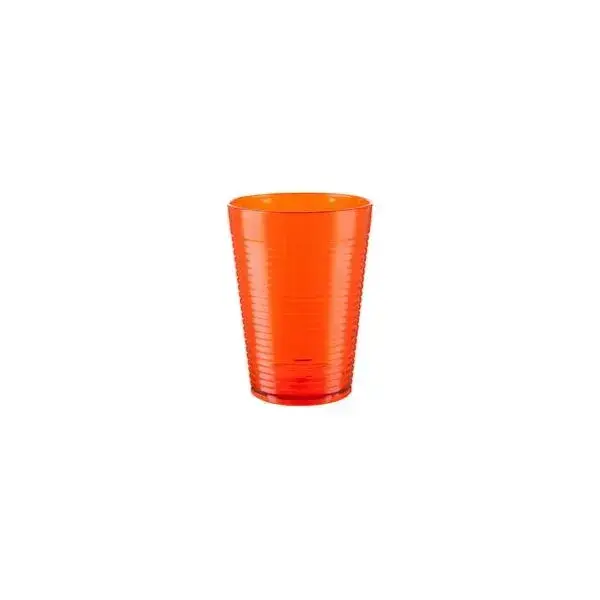 Прозрачный стакан с сочным апельсиновым оттенком сочетает практичность и стильный дизайн. Рифлёная поверхность обеспечивает удобный захват, а прочный пластик выдерживает ежедневное использование.