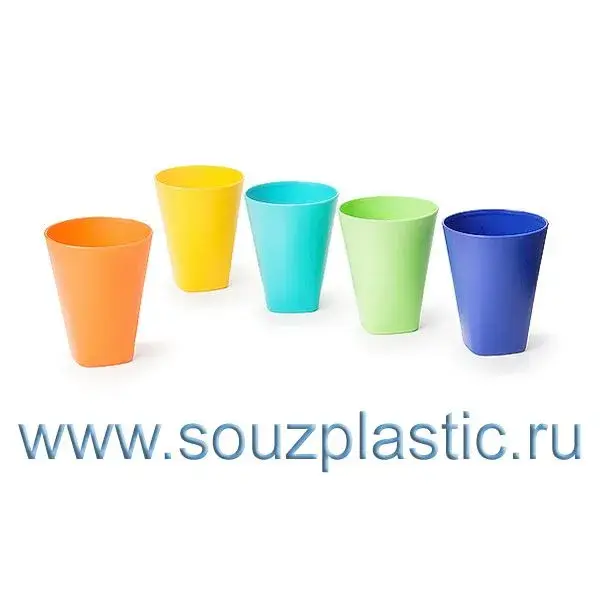 Стакан представлен в пяти ярких цветах: оранжевом, желтом, светло-голубом, зеленом и синем. Цвет при заказе определяется случайным образом из доступного ассортимента.