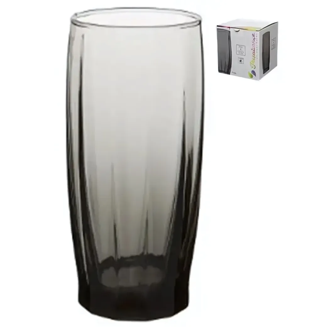 Этот стеклянный стакан станет эффектным элементом сервировки и приятным акцентом на вашем столе. Градиент от прозрачного верха к тёмному низу подчеркивает его изысканный дизайн, а рельефные вертикальные грани придают оригинальность и удобство в использовании. Такой дизайн не только эстетичен, но и практичен — стакан удобно держать в руке, он не скользит, даже если пальцы слегка влажные.