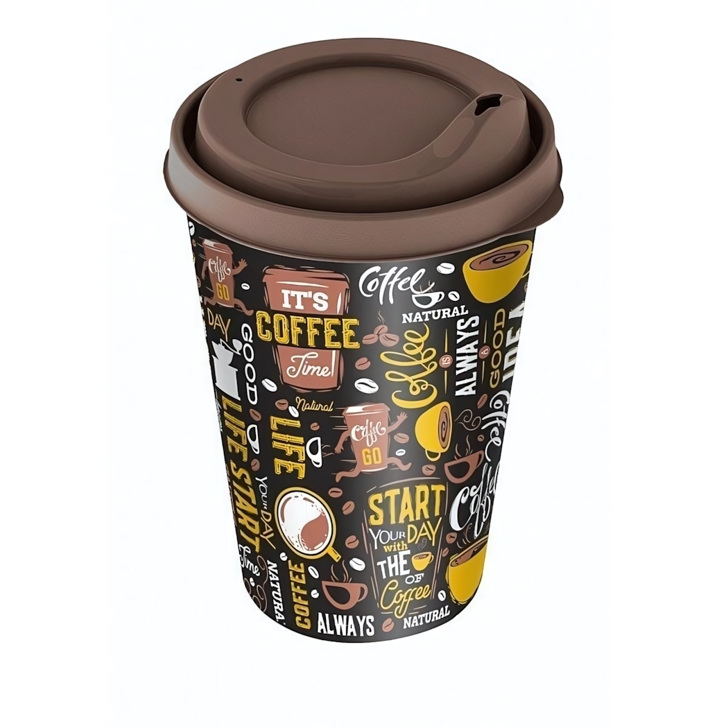 Стакан многоразовый «IZI-GO» с крышкой 420 мл, темно-коричневый, IML-декор, для СВЧ