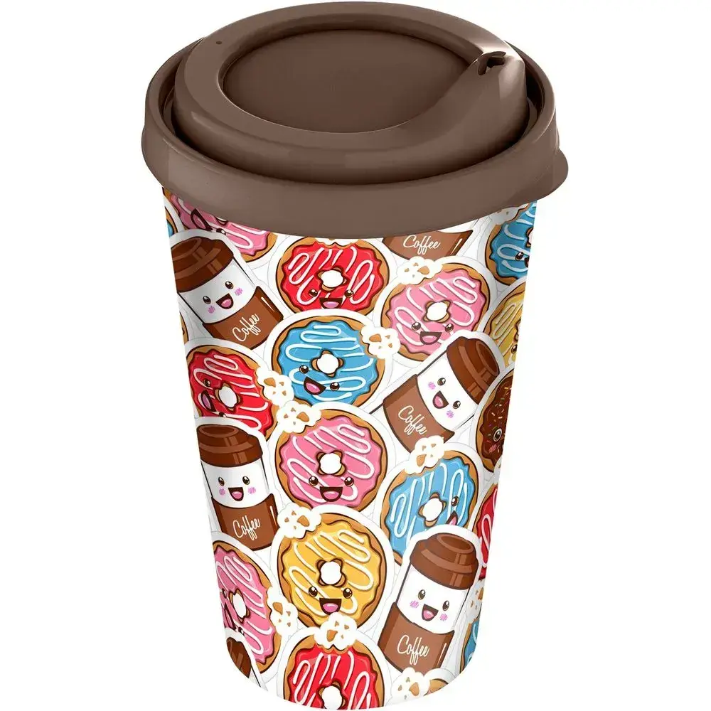 Стакан IZI-GO с крышкой 550 мл, темно-коричневый, пластик, для дома и офиса