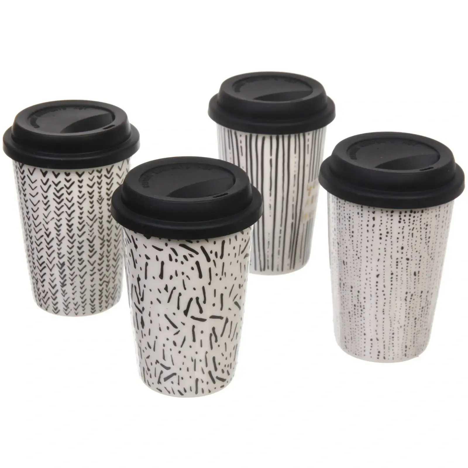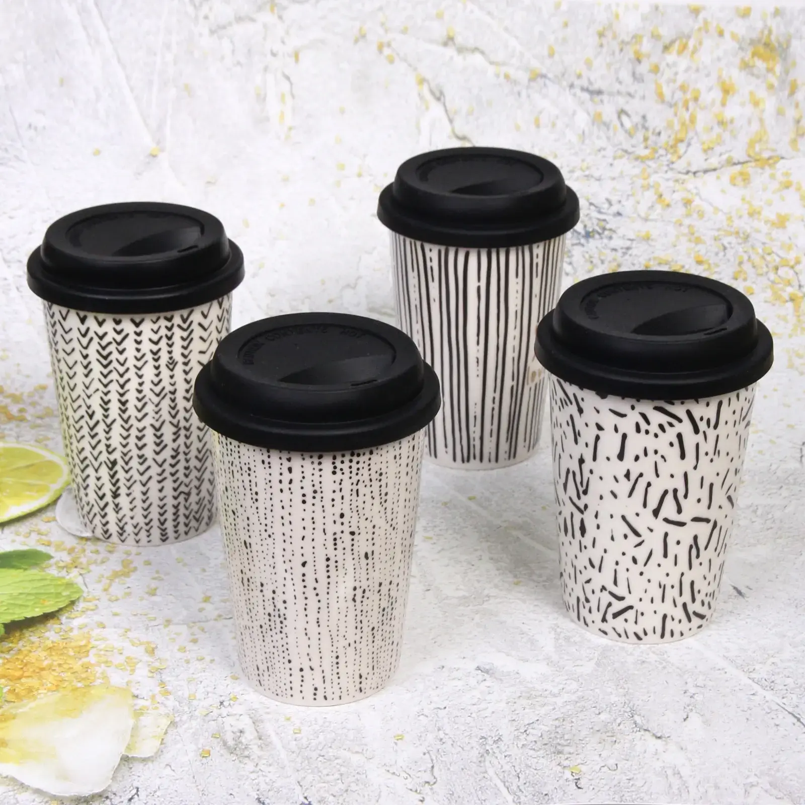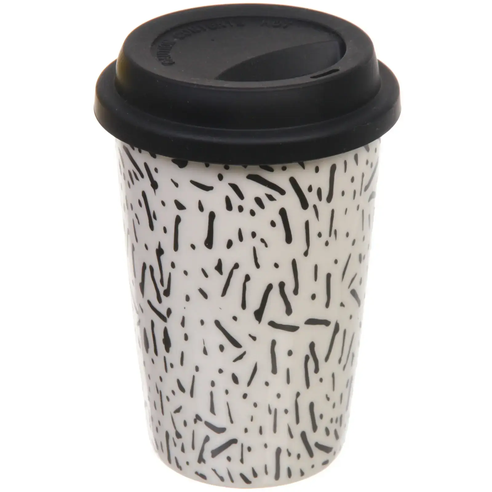 Керамический стакан с крышкой — идеальное решение для любителей горячих напитков. Уникальный черно-белый дизайн с геометрическими узорами подчеркнёт ваш вкус, а практичность многоразового использования сделает его незаменимым спутником в офисе, путешествиях или домашнем уюте.