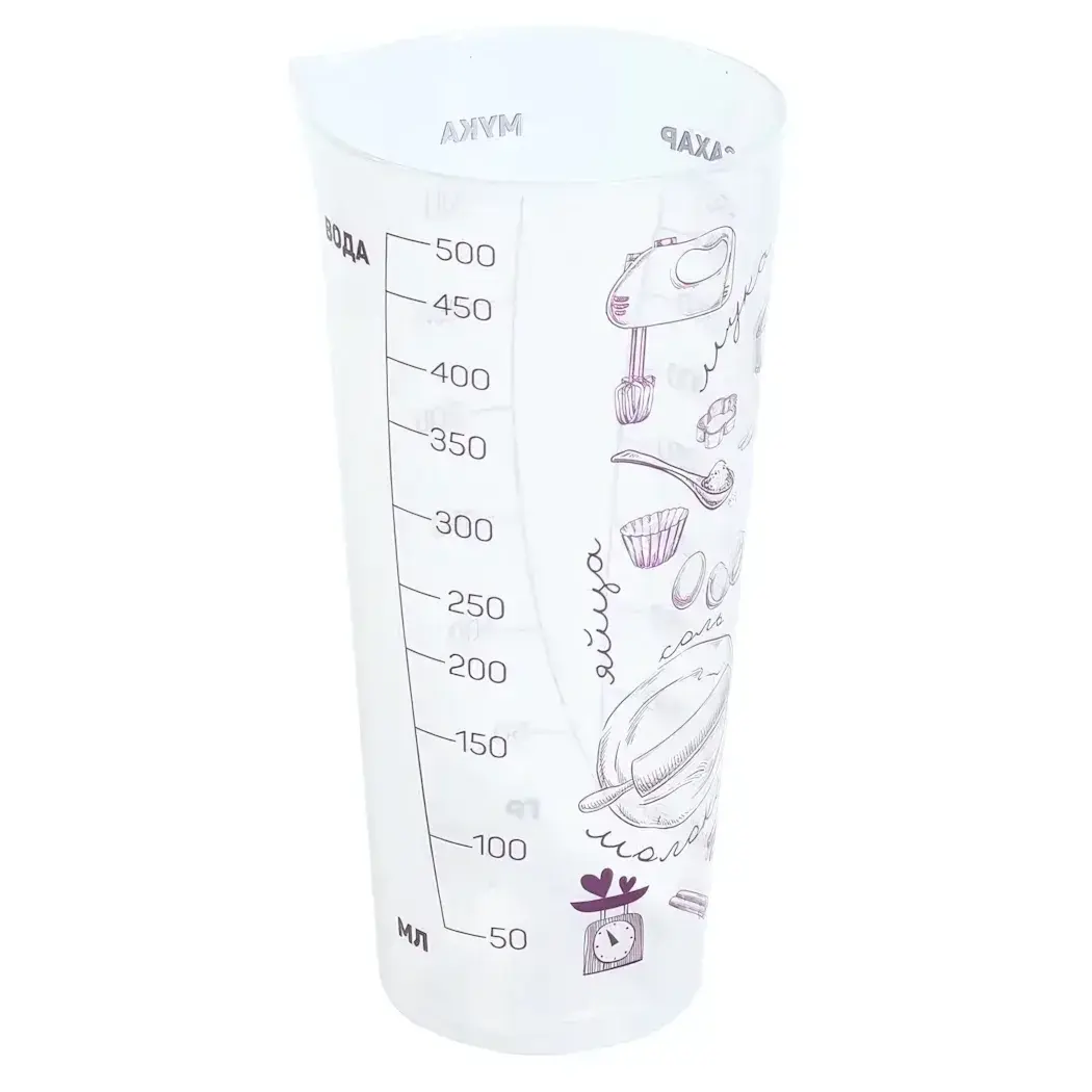 Мерный стакан «Поваренок» 500 мл, пластик, прозрачный с фиолетовой шкалой, для точных измерений